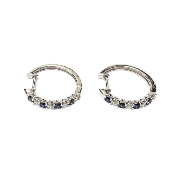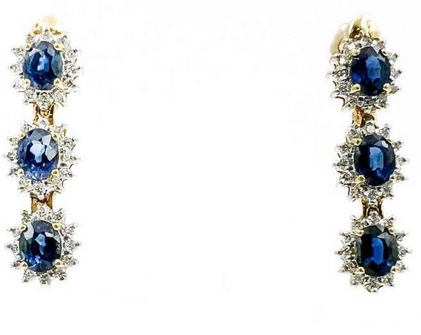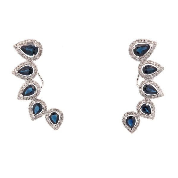 18K White Gold Diamond and Sapphire Dangle Earrings.