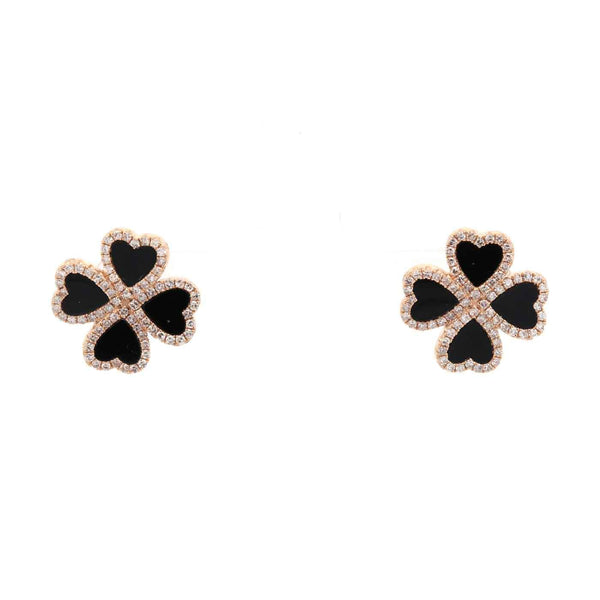 18K Flower Leaf Earrings With Yellow And White Diamonds