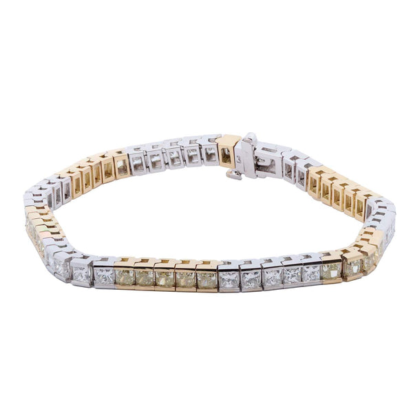 18K White And Yellow Gold Alternating Round And Princess Diamond Tennis 7" Bracelet 30Diamonds=~4.10Ctw, 26 Yellow Diamonds= ~4.00Ctw Provident Jewelery