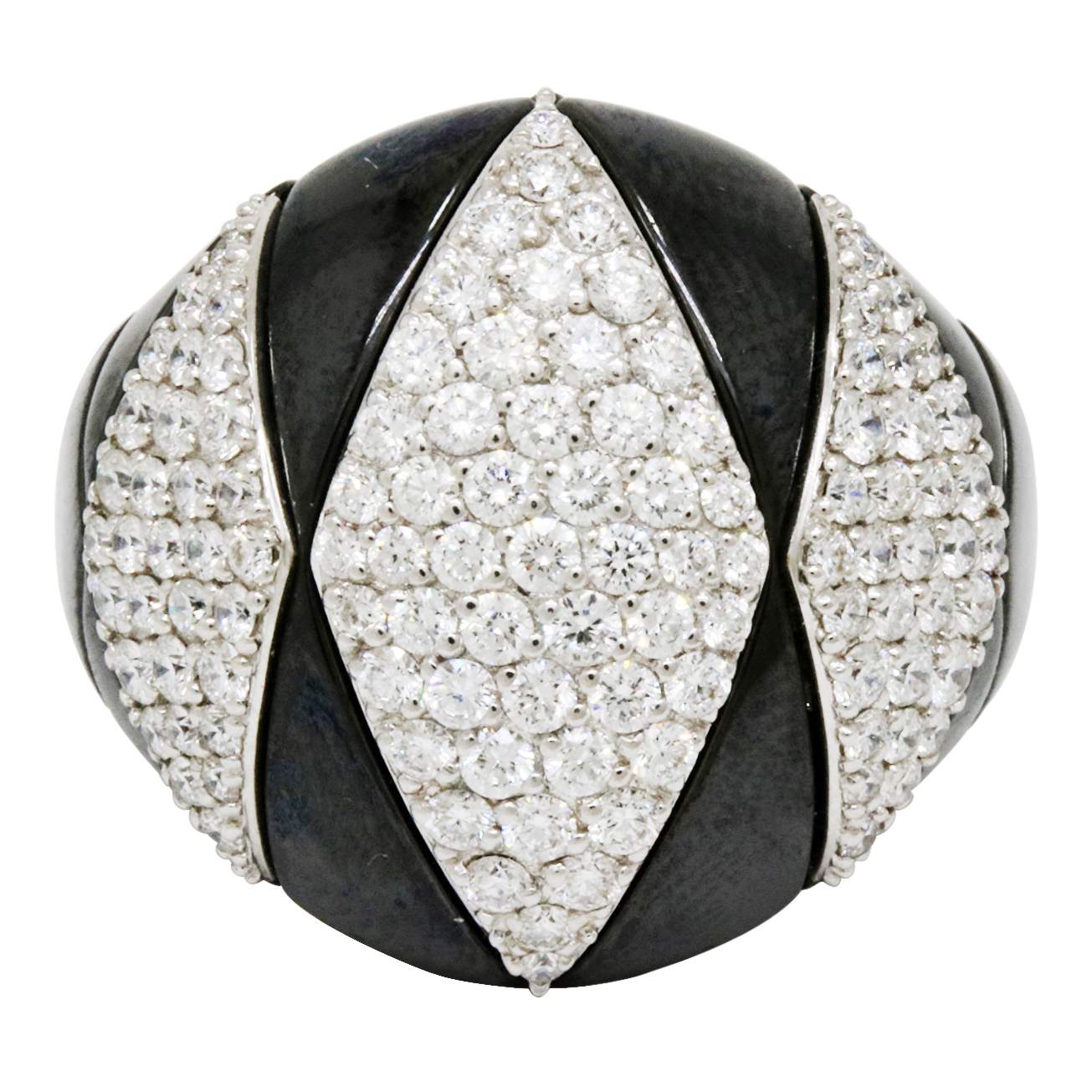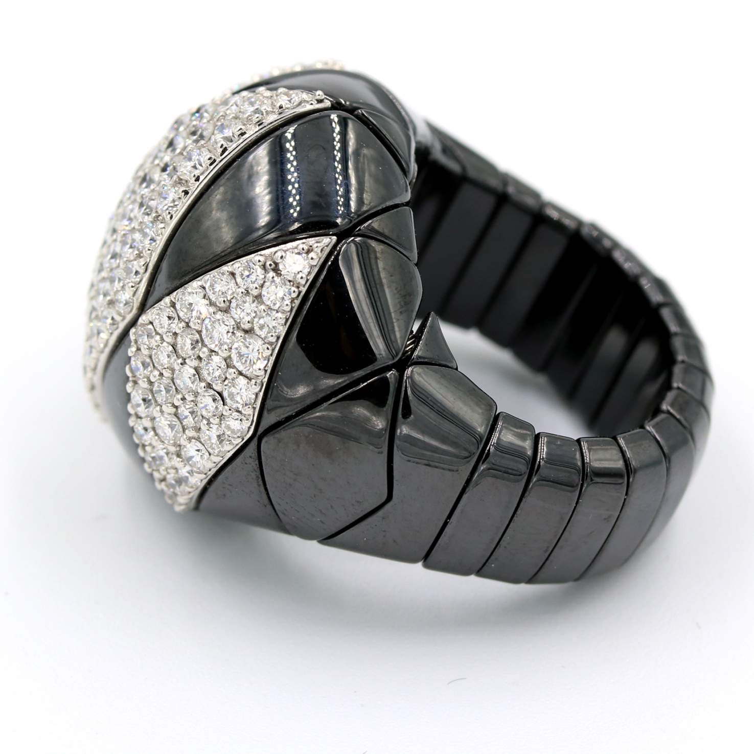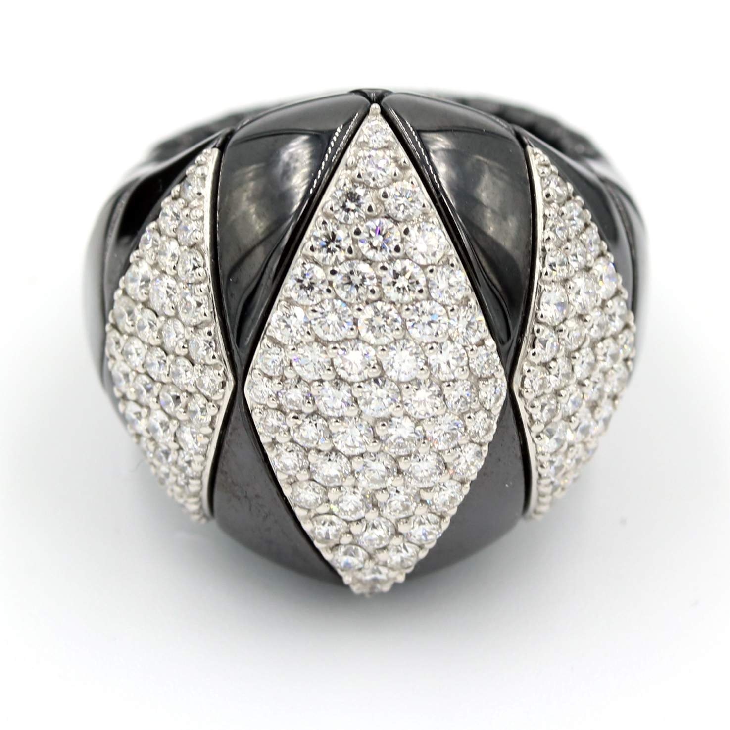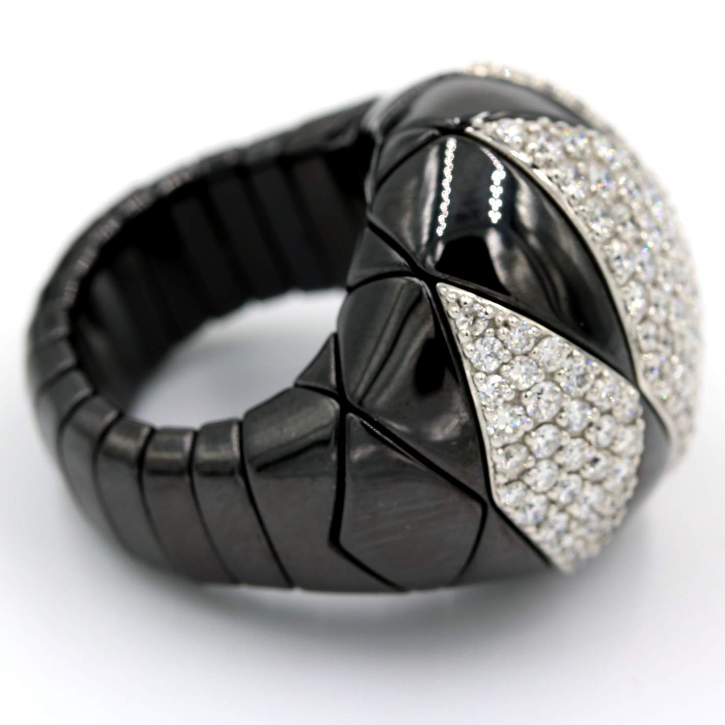 STUNNING ROBERTO COIN DEMEGLIO RING WITH BLACK CERAMIC AND 1.98 CARAT TOTAL WEIGHT OF ROUND PAVE DIAMONDS IN 18K WHITE GOLD.