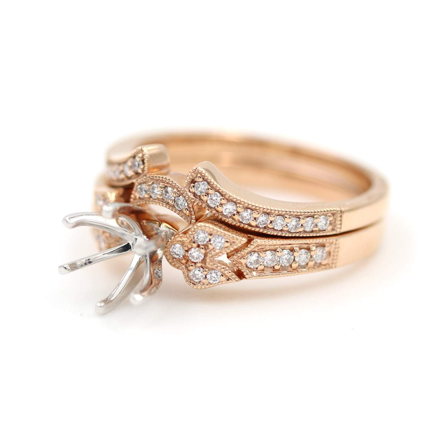 14K Rose Gold Mounting With 6 Prong Head, Bridal Set, 44RD=0.24ctw