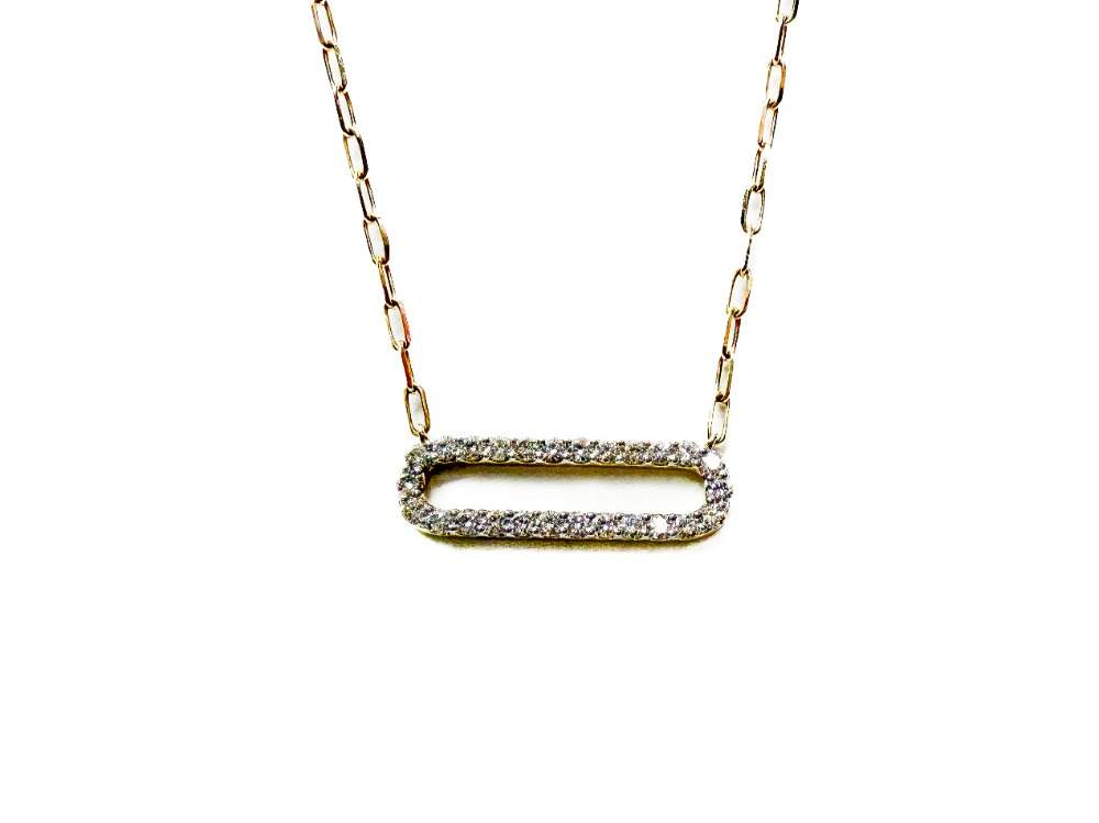 14K Yellow Gold Diamond Oval Paperclip Necklace, Paperclip Chain, 18", D=~0.77ctw
