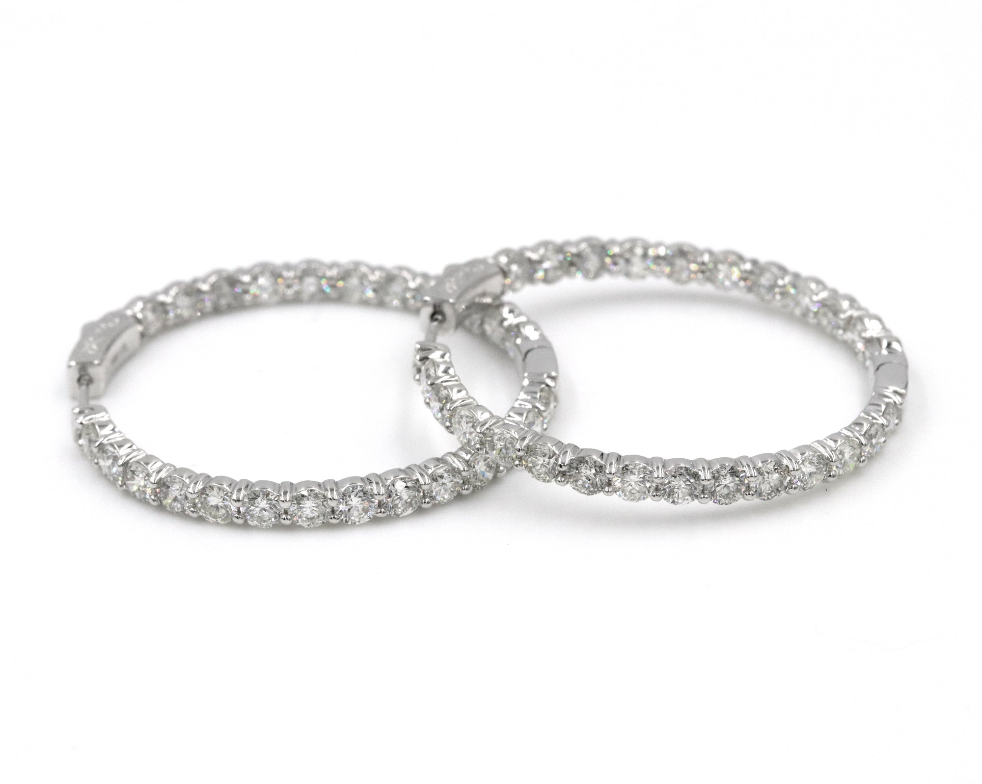 14K White Gold Inside Out Diamond Hoop Earrings D=7.32Ctw