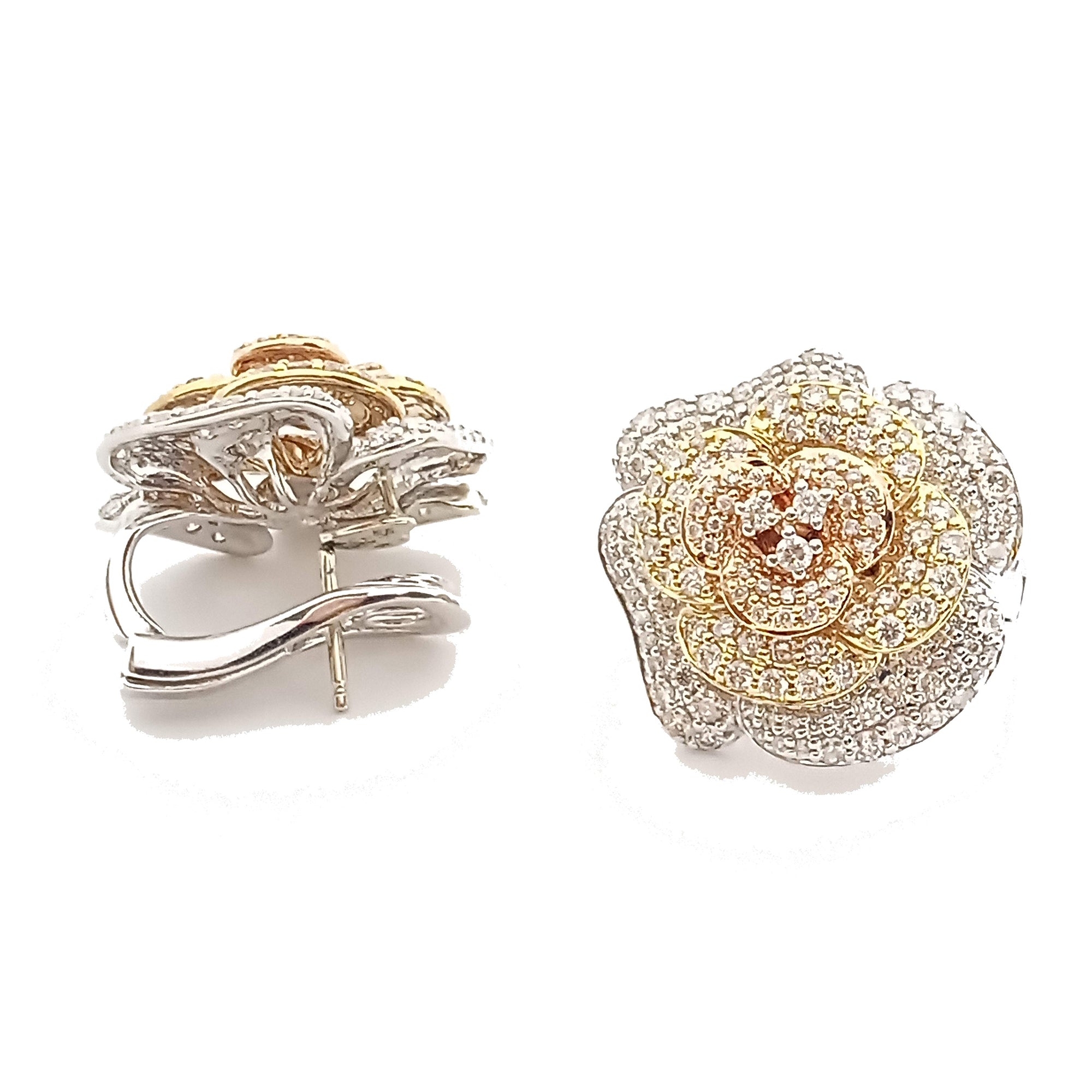 14K White Yellow And Rose Gold Rose Flower Diamond Earrings 292D=~4.50ctw