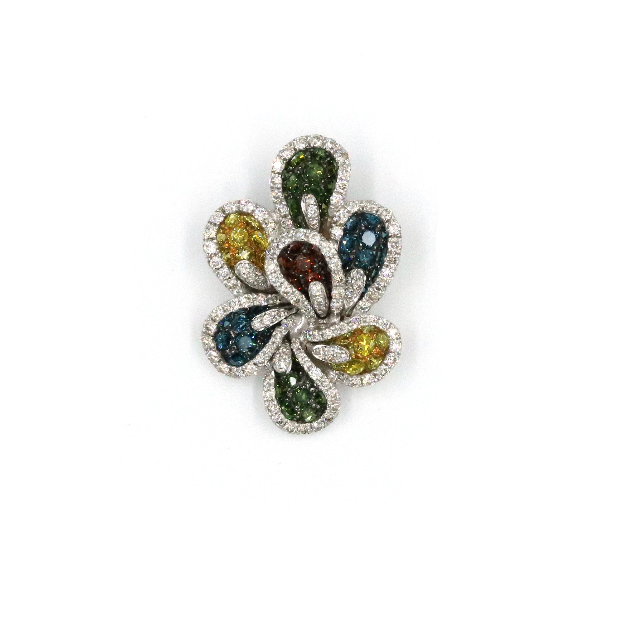 14K White Gold Levian Irradiated ~2.00ctw Colored Diamond, "Mixed Berry Flower"