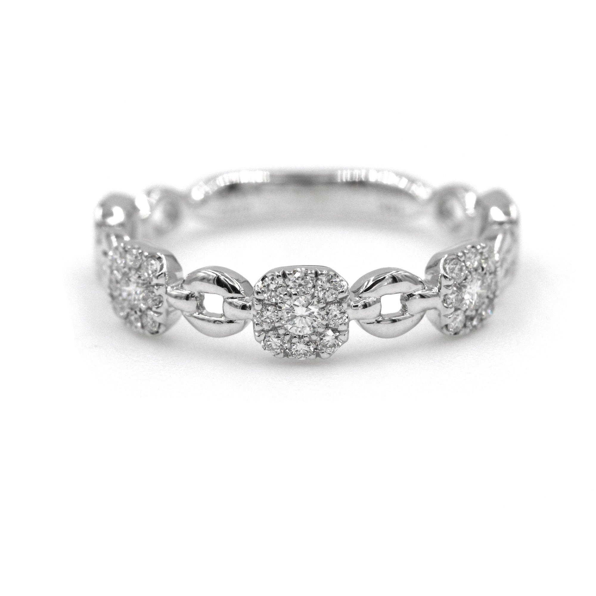 14K White Gold Link Style Band With Diamonds D=.22Ctw