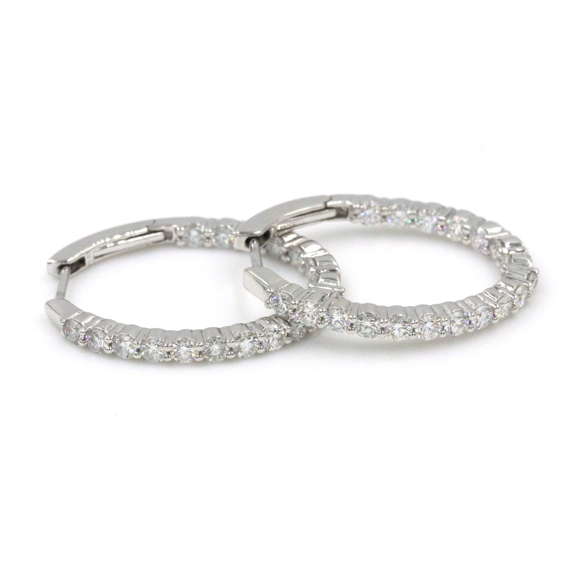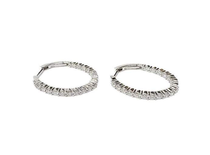 14K White Gold Oval Inside Out Diamond Hoops/Earrings 36D=~1.53Ctw