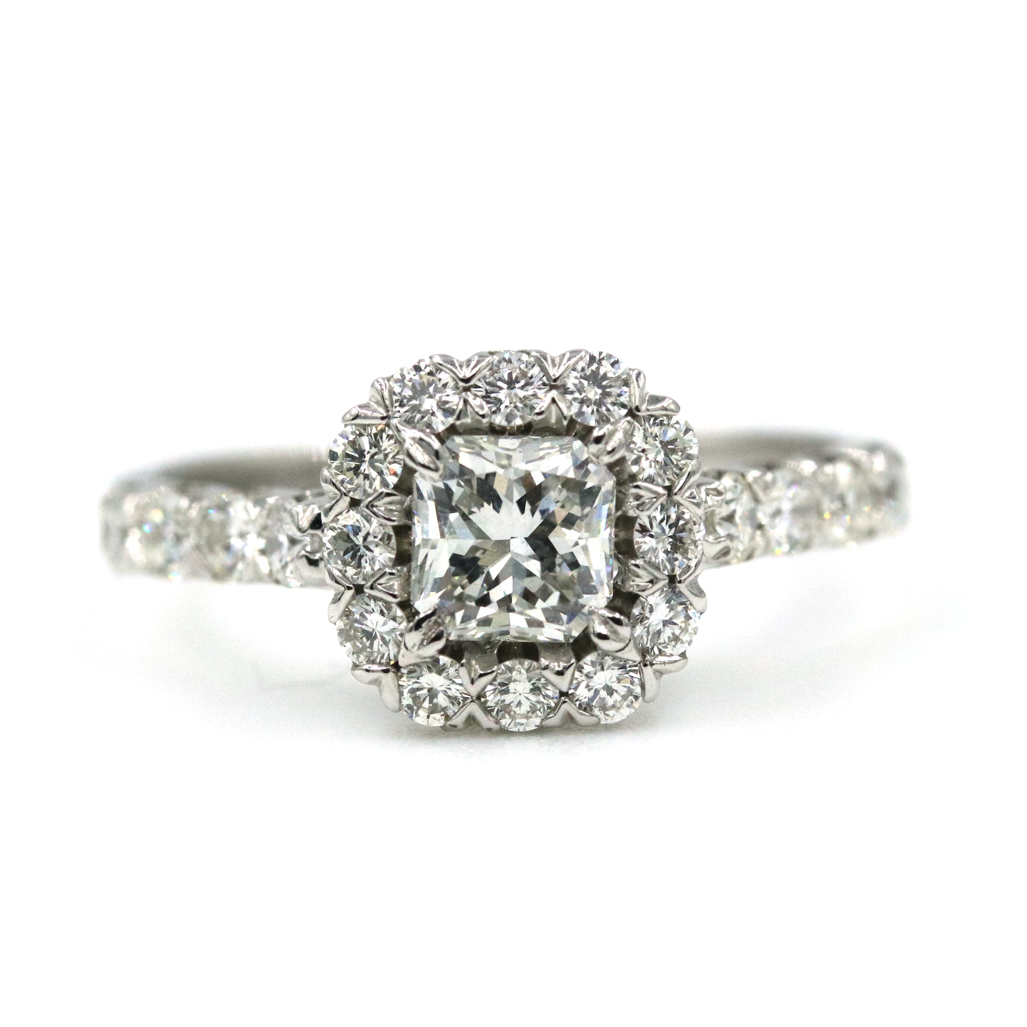 14K White Gold Princess Cut Halo Diamond Engagement Ring 1D=~.92Ctw H/VS1 28D=~1.00Ctw