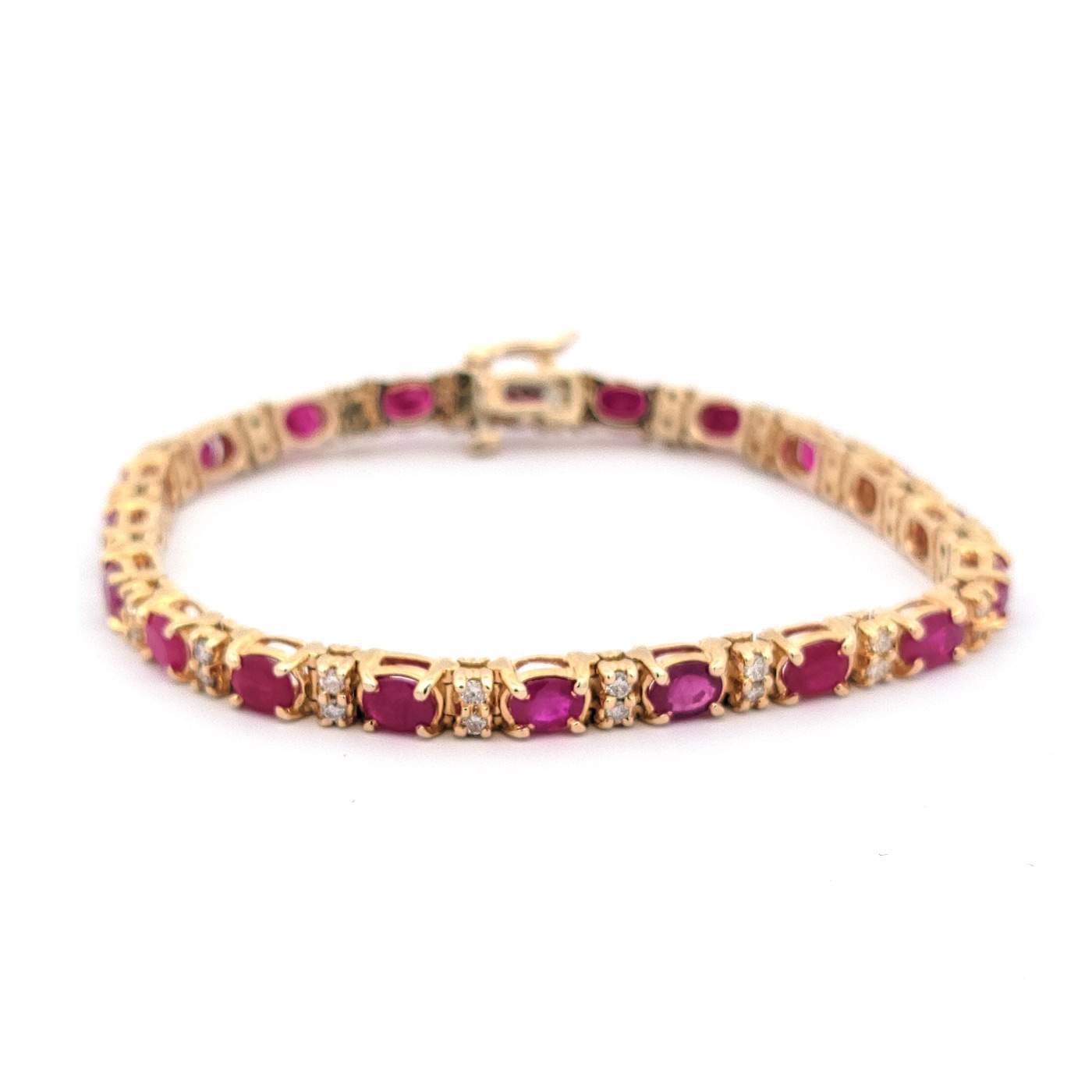 14K Yellow Gold Diamond And Ruby Line Bracelet 20Ruby=~7ctw 40Dia=~0.80 ctw