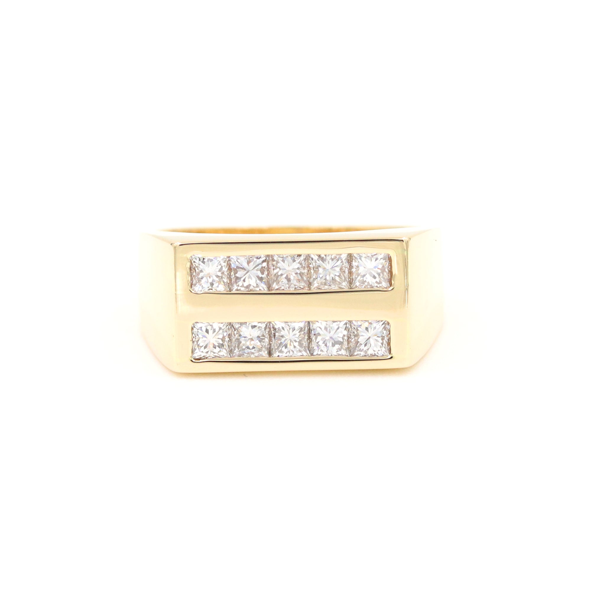 14K Yellow Gold 2 Channel Princess Cut Diamond Rectangular Top Ring, 10D=~1.50Ctw