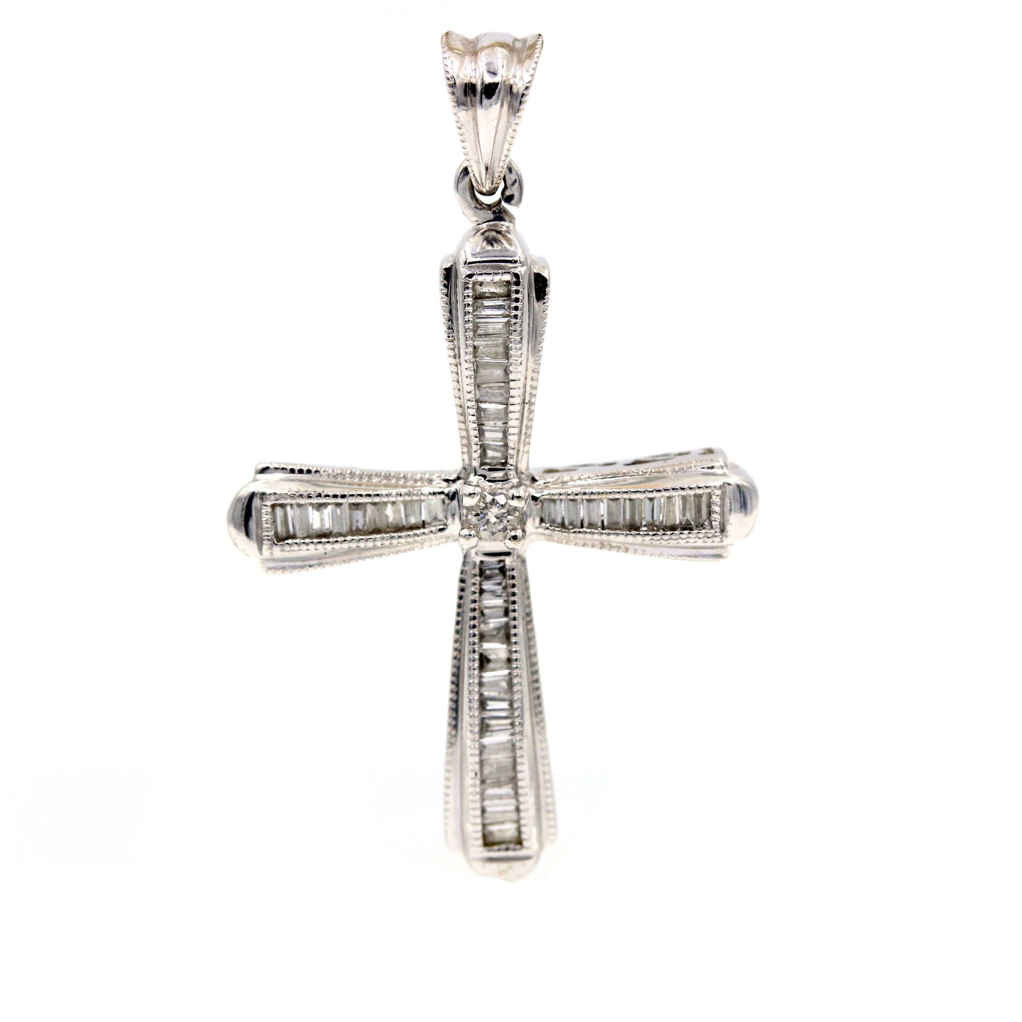 14K White Gold Diamond Channel Set Baguette Cross, 41 Diamonds=~0.50ctw