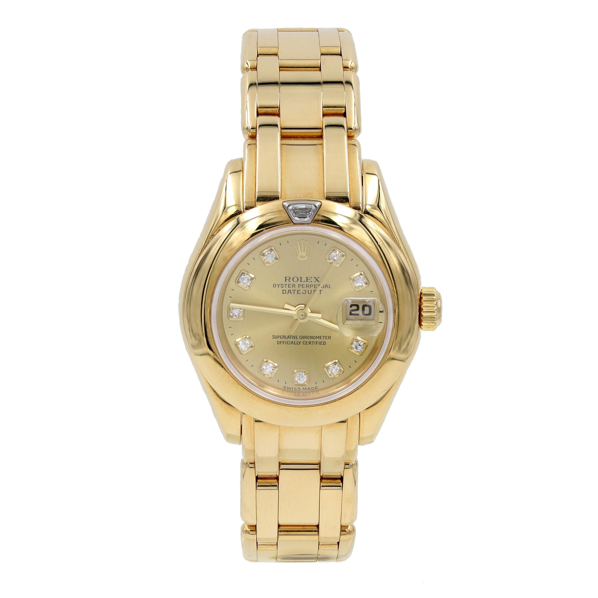 PRE-OWNED Watch; Ladies Pearlmaster Rolex Watch, Champagne Diamond Dial, Smooth Bezel, BOX And PAPERS Dated 2001, A663998/80328 29mm