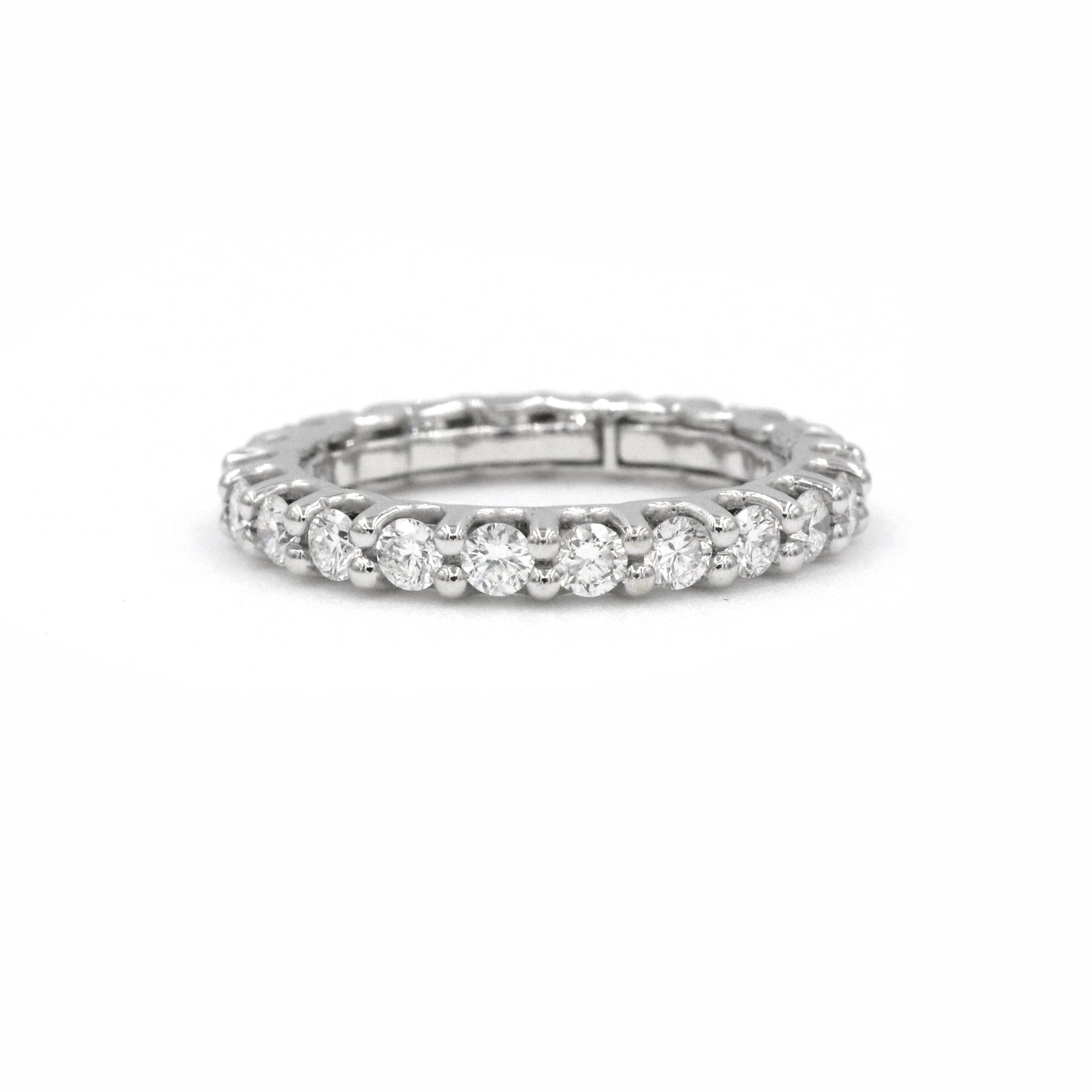 Facet Barcelona 18K White Gold Full Diamond Eternity Multi Size Band 21 rounds Diamonds=1.40ctw , (Ring size 7.25 *With Inner Spring Adjustments Inside For Comfort Over Knuckles.)