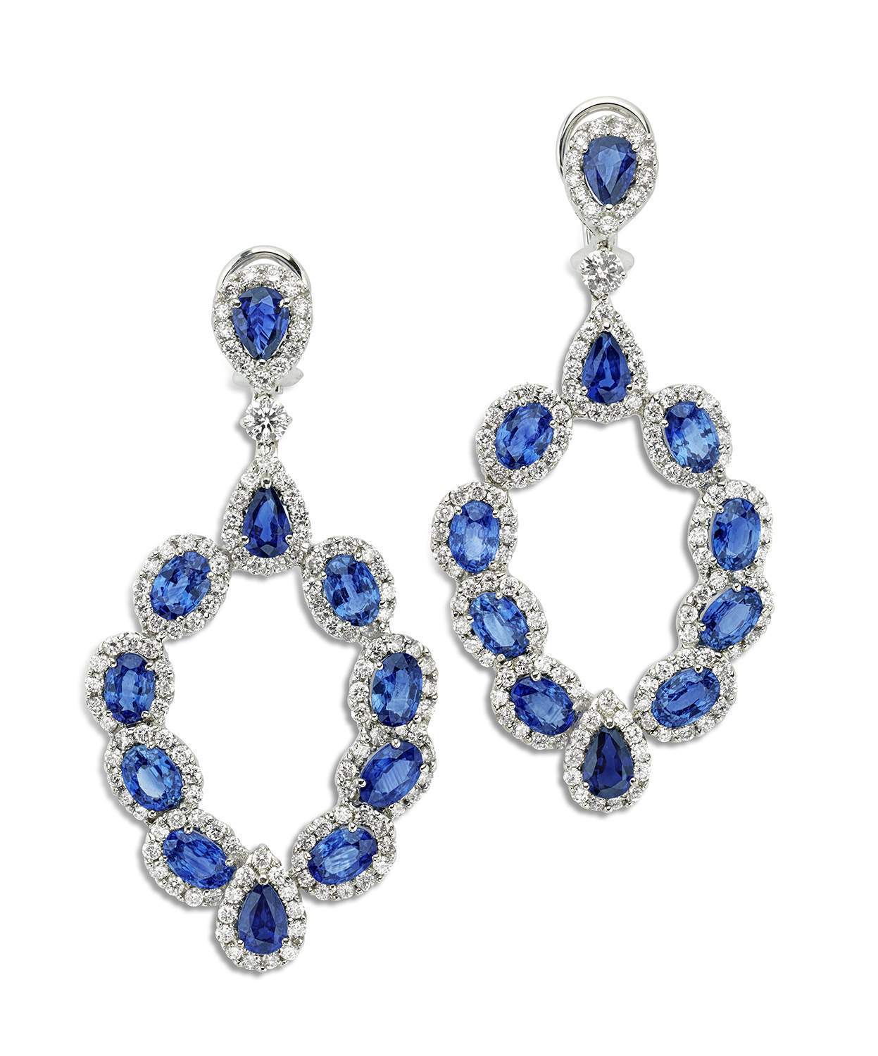 18K White Gold Sapphire And Diamond Dangle Earrings 22S= ~11.92 Ctw 270Dia= ~4.00 Ctw