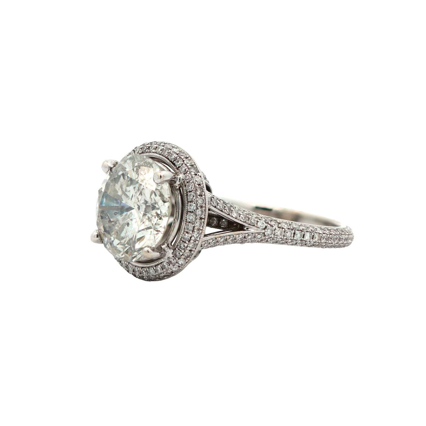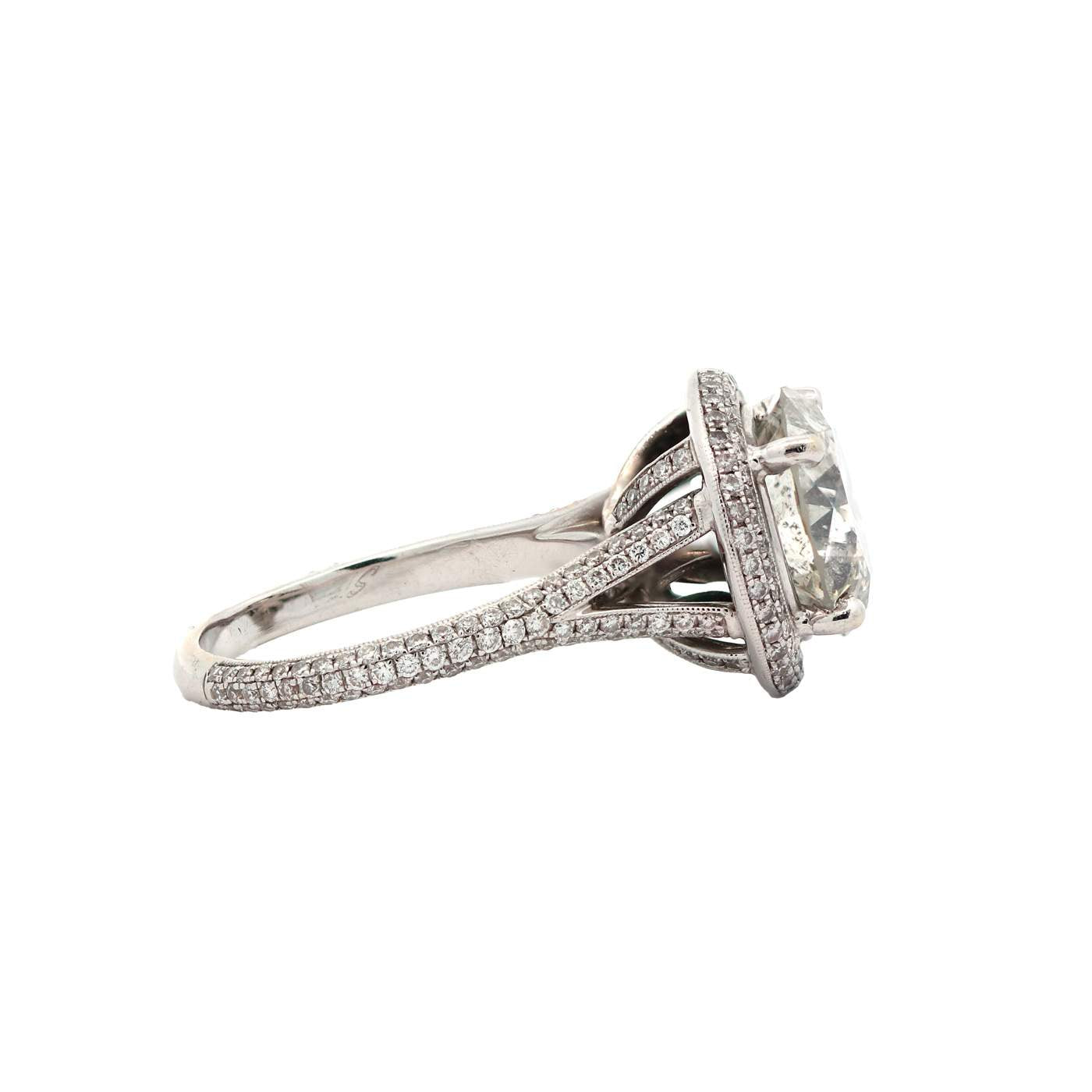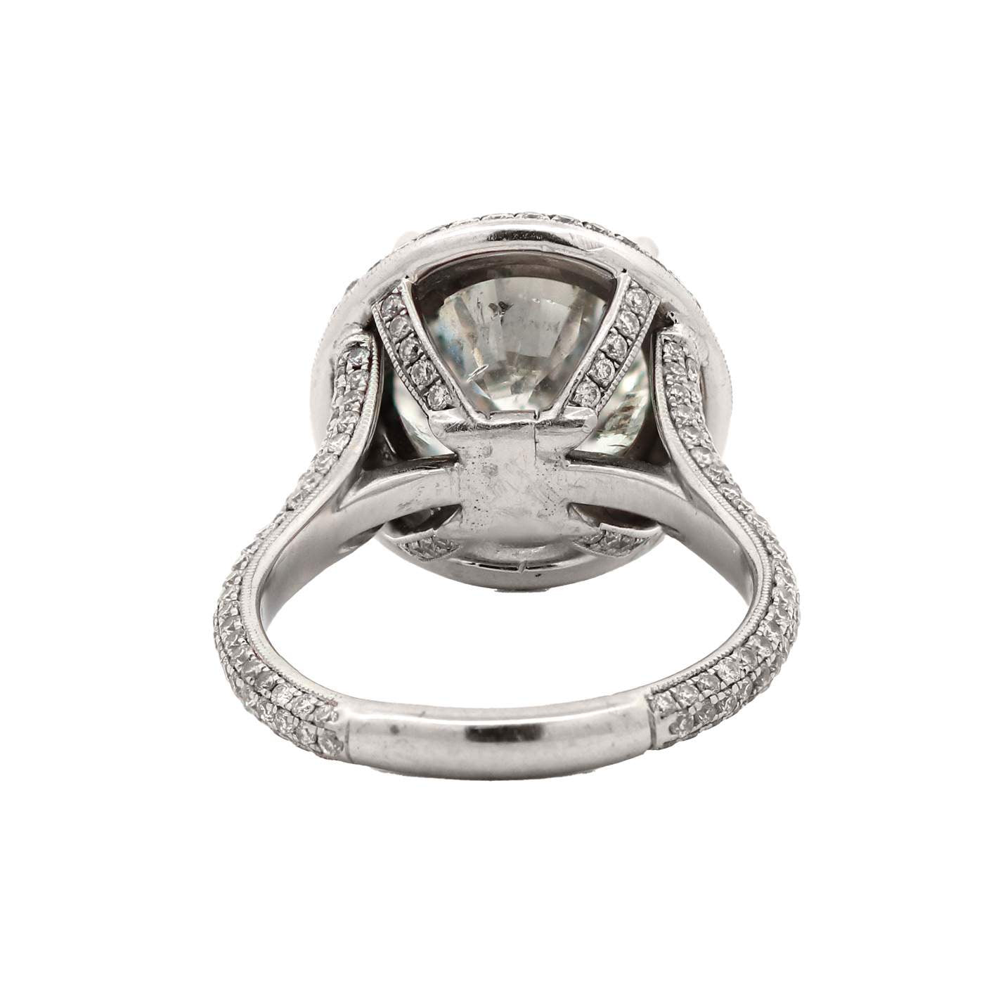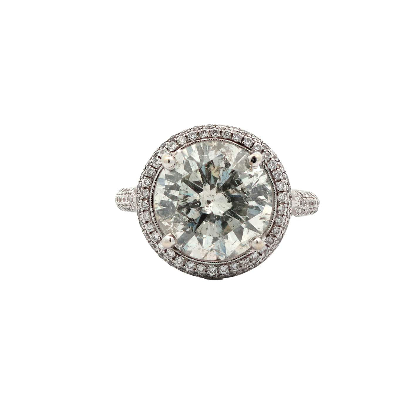 18K White Gold Pave Halo 7.79ctw Diamond Engagement Ring D=6.47Ct J/Imp D=~1.32ct