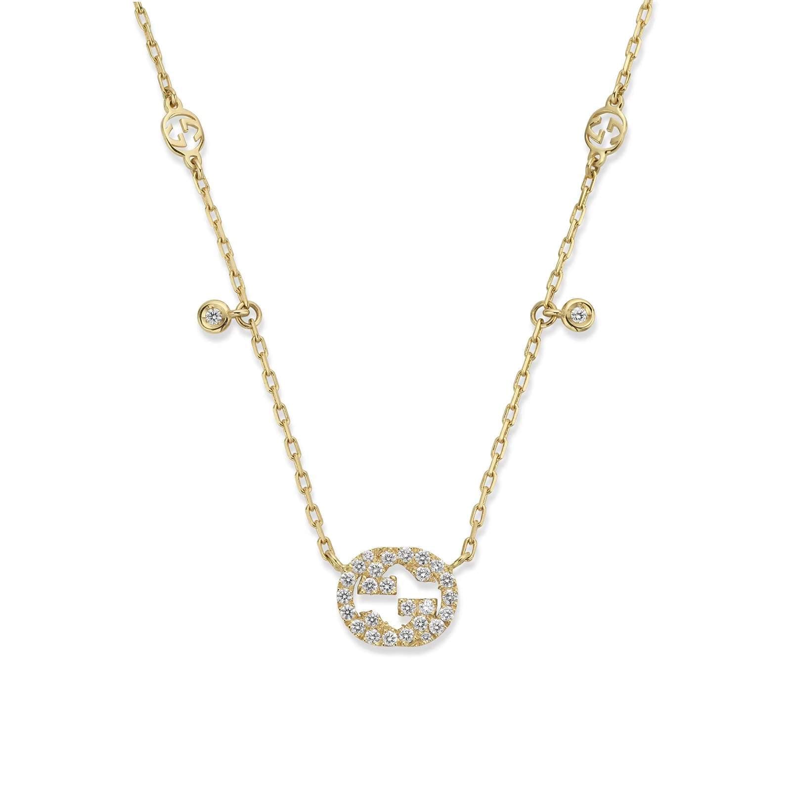 18kt Yellow Gold "G" Station Necklace Containing .27 Carats Of Round Brilliant Cut Diamonds Bezel Set On The Chain And On The Pendant. The Chain Is 17in In Length That Is Adjustable To 16in.