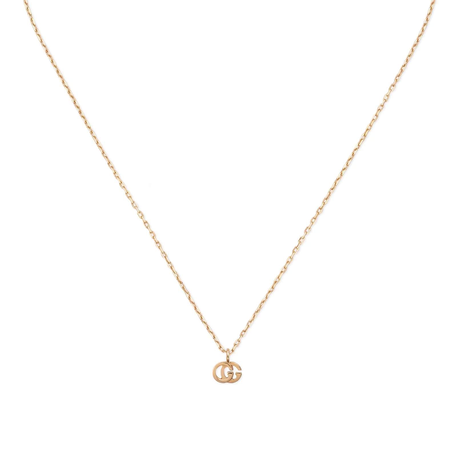 18kt Rose Gold Running "G" Gucci Necklace On A 18 Inch Chain Adjustable To 16 Inches. The Pendant Measures Approximately 5mm x 8mm.