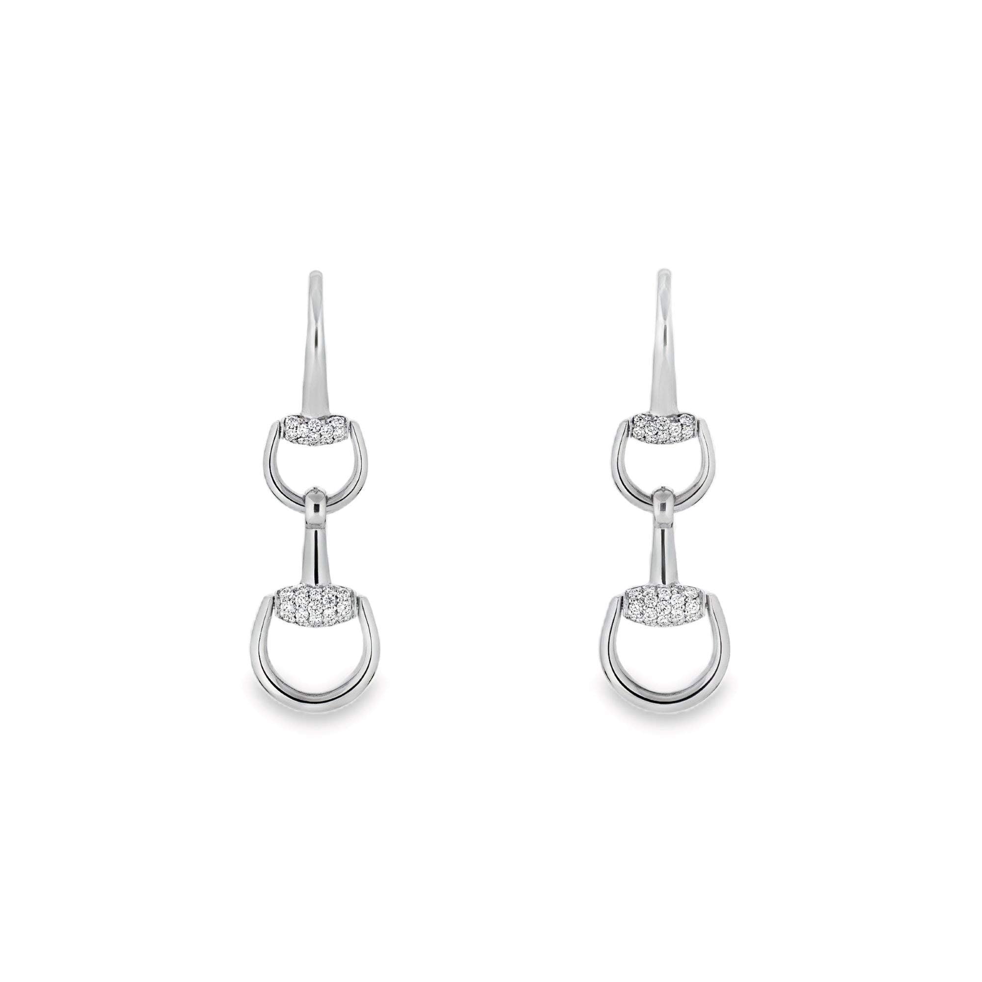 18kt White Gold Gucci Multi Horsebit Earrings Containing Approximately .27 Carats Of Round Brilliant Cut Diamonds. The Earrings Measure Approximately 1 1/4in.