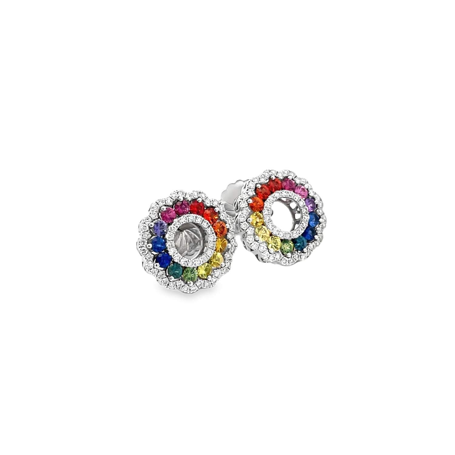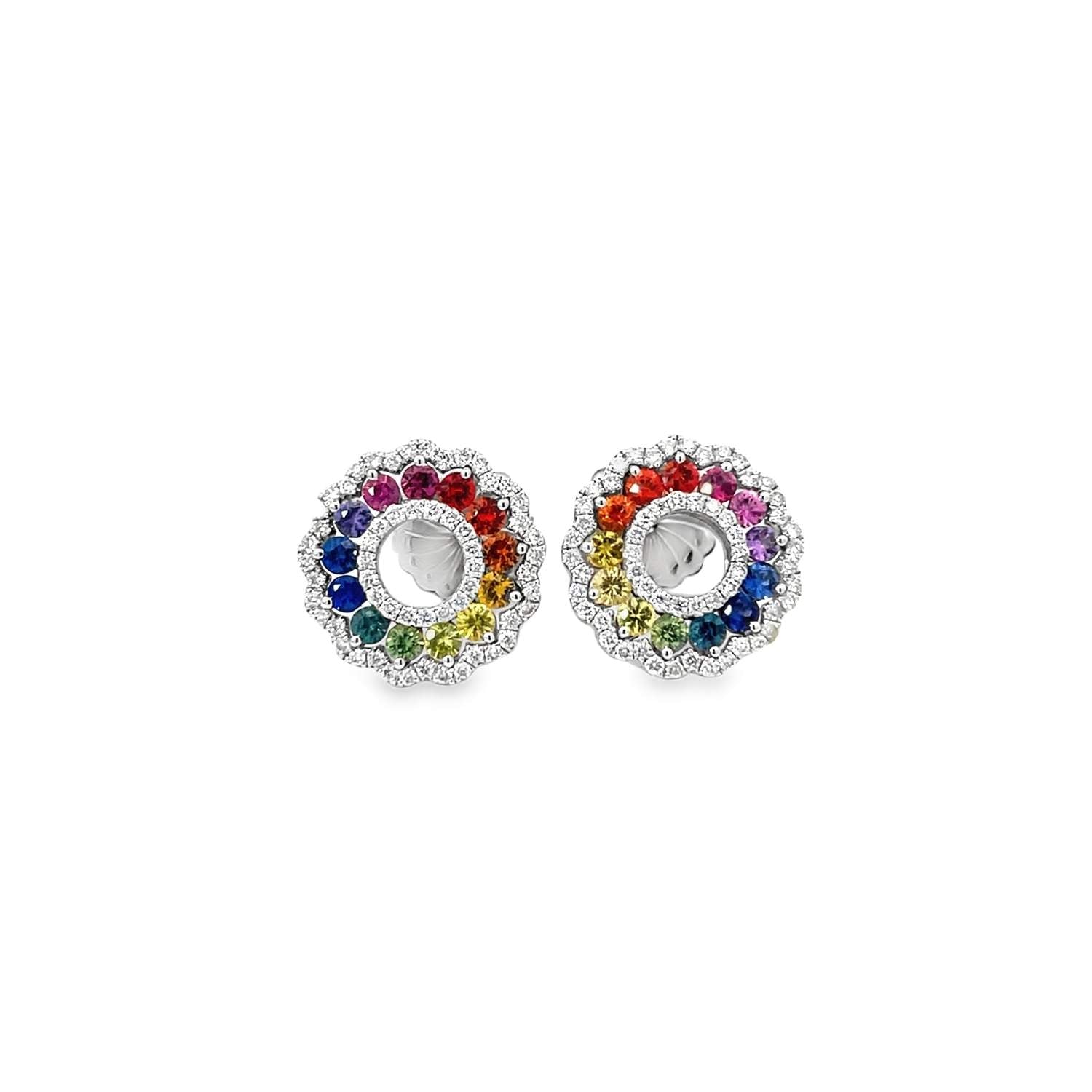 18kt White Gold Earrings Containing 1.04 Carats Of Mulit-Colored Sapphires And .42 Carats Of Round Brilliant Cut Diamonds. The Earrings Measure 13mm.