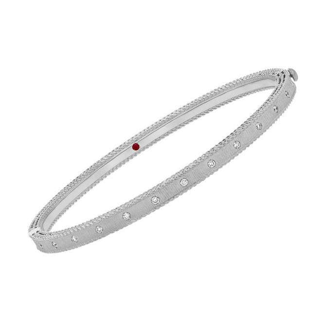 18kt White Gold Roberto Coin Princess Bangle With Approximately .17 Carats Of Diamonds. The Bangle Measures Approximately 48mm X 58mm.