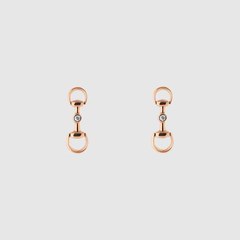 18KT RG GUCCI HORSEBIT EARRINGS , D=.058CT