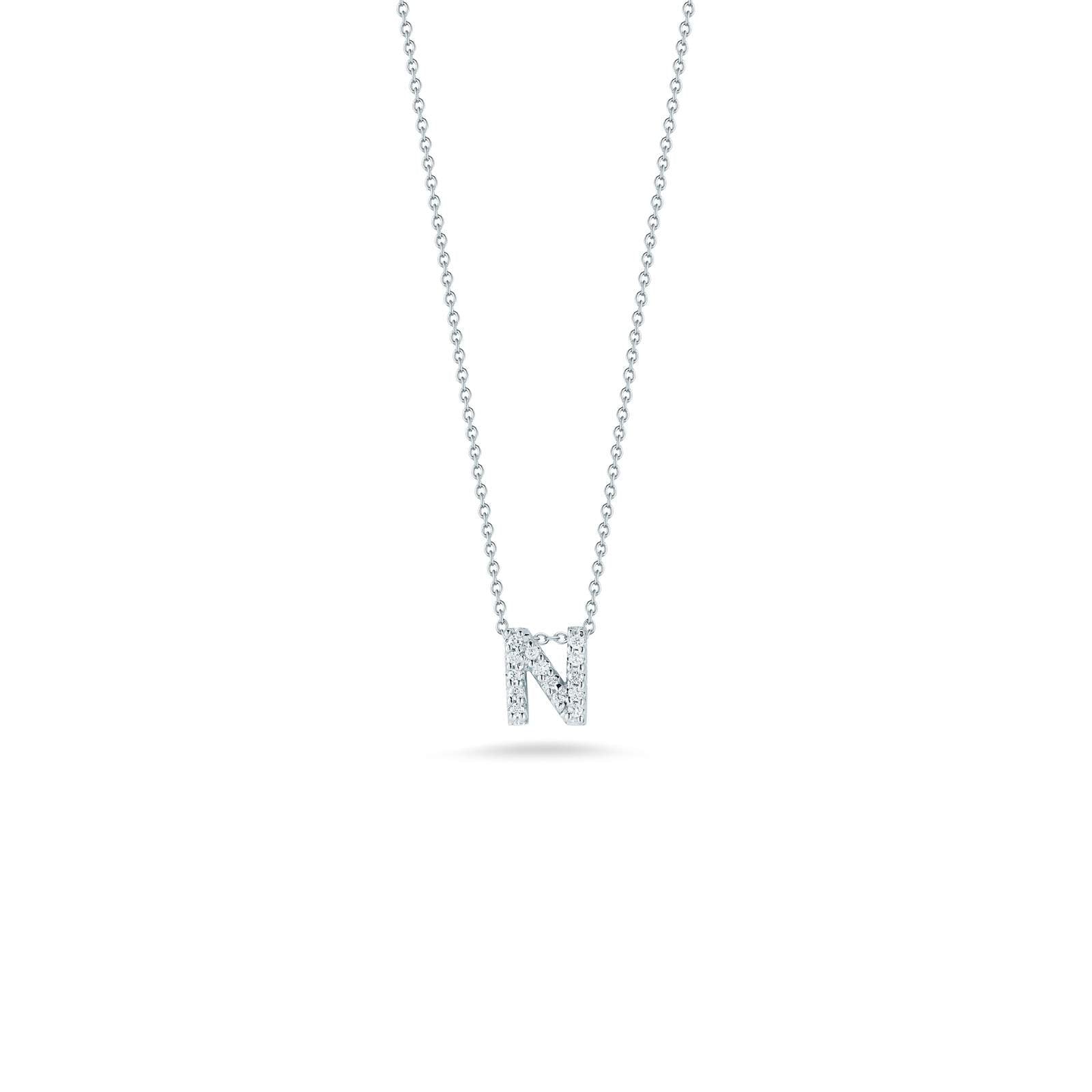 18KT WG ROBERTO COIN LOVE LETTER "N" INITIAL NECKLACE, D=.07CTS