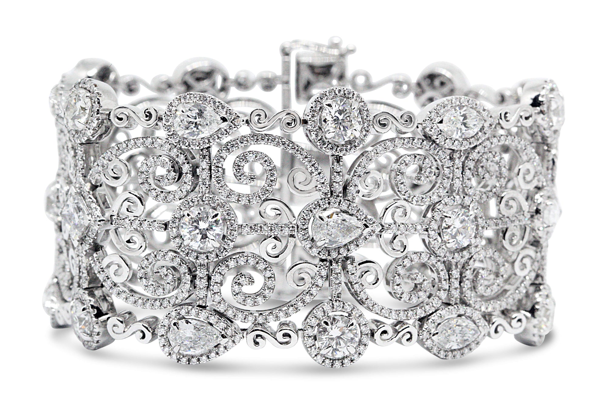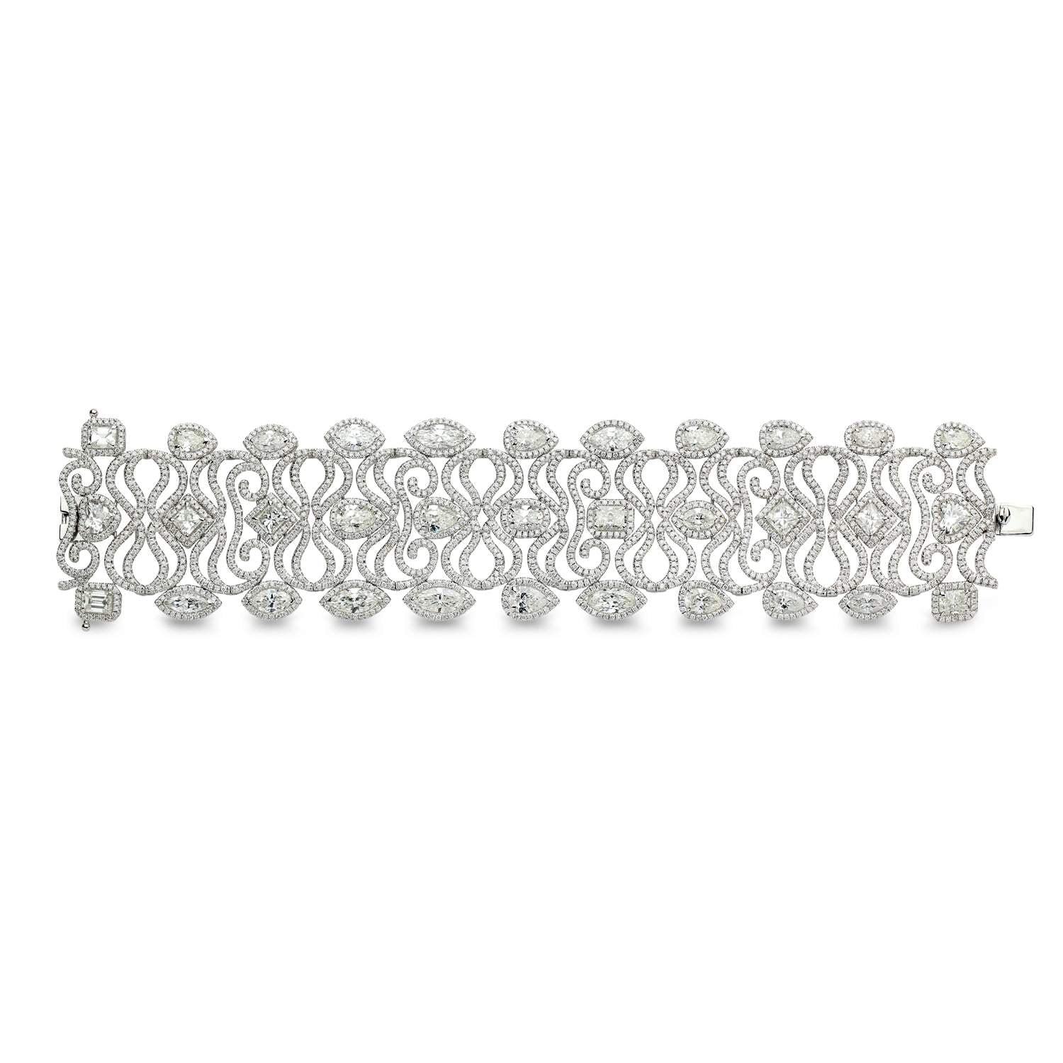 Stunning 18K White Gold Diamond Bracelet Featuring 40.28 Carats of Round Cut Pave Set Diamonds.