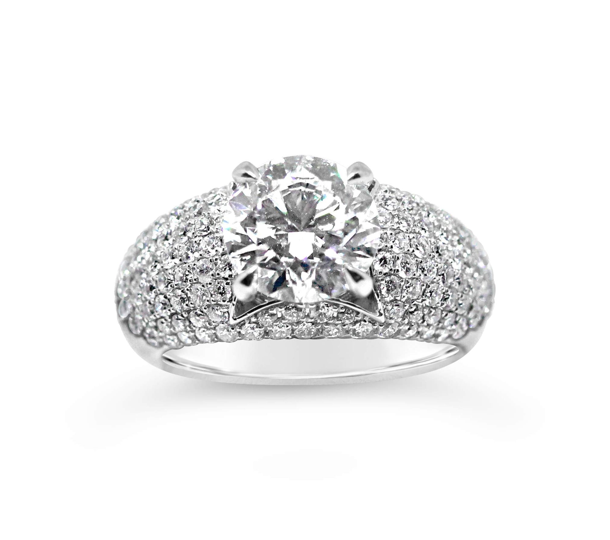 Stunning 18K White Gold 3.01CTS Round Brilliant Cut Diamond GIA Certified H/VVS1 Accented With Pave Set Diamonds 1.31 Carat Total Weight. The Ring Can Be Sized To Most Sizes.