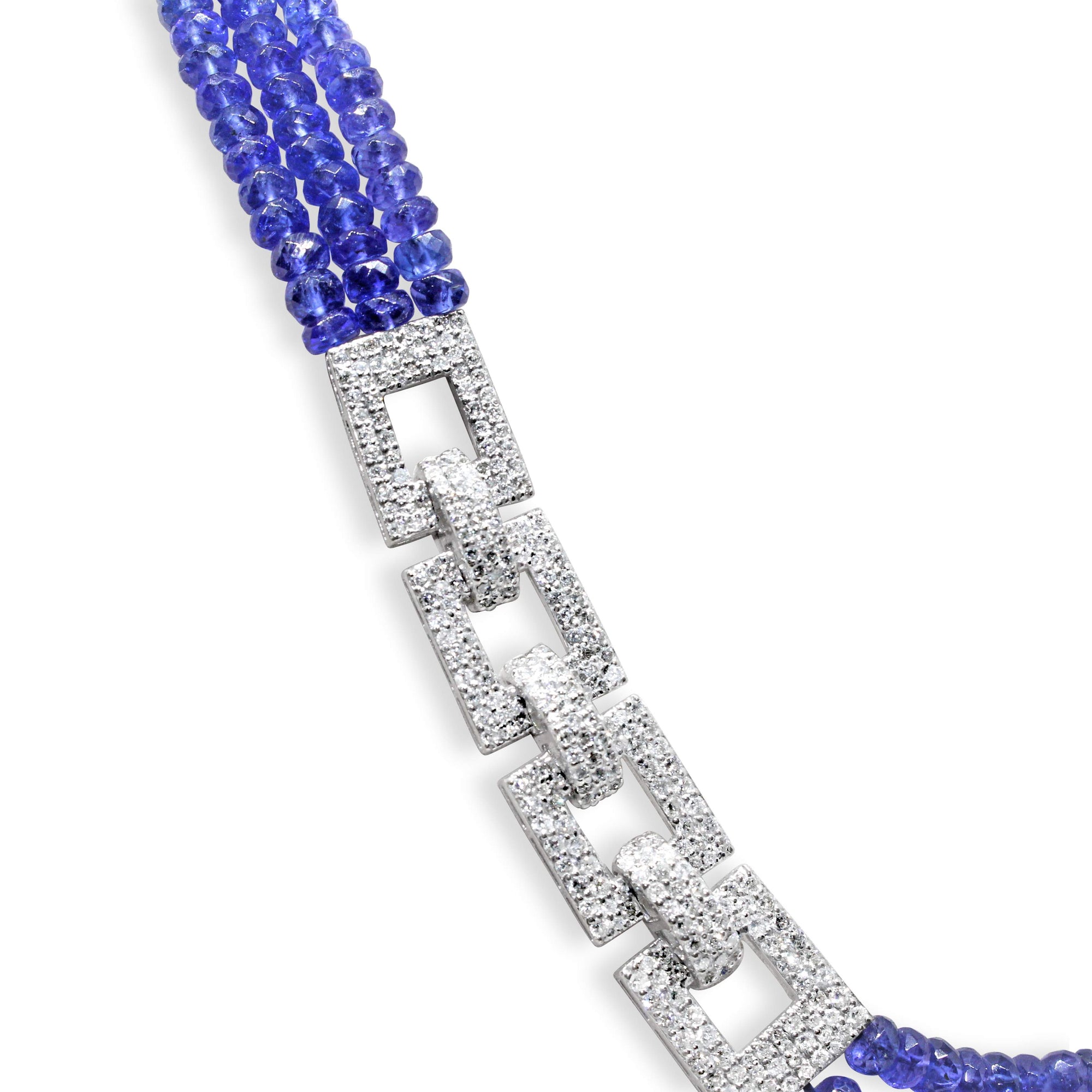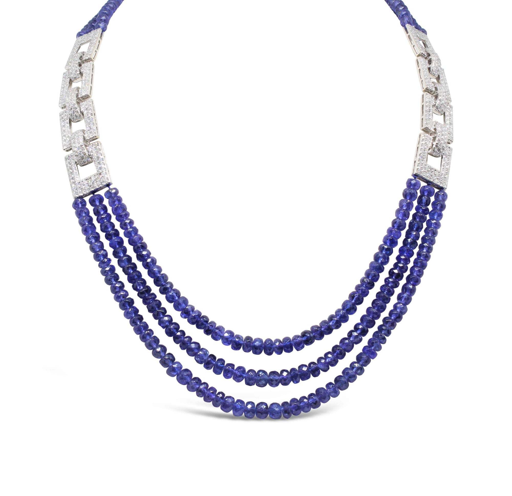 Beautiful 3 Strand Necklace Featuring 237.50 Carats Of Tanzanite Beads And 9.04 Carats Of Diamonds Set In 18kt White Gold.