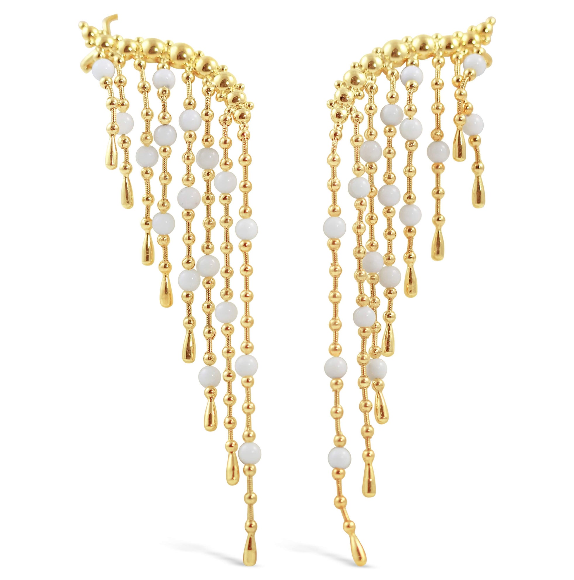 Stunning 18K Yellow Gold Carla Amorim Dangle Earrings with splash of White Coral throughout them.