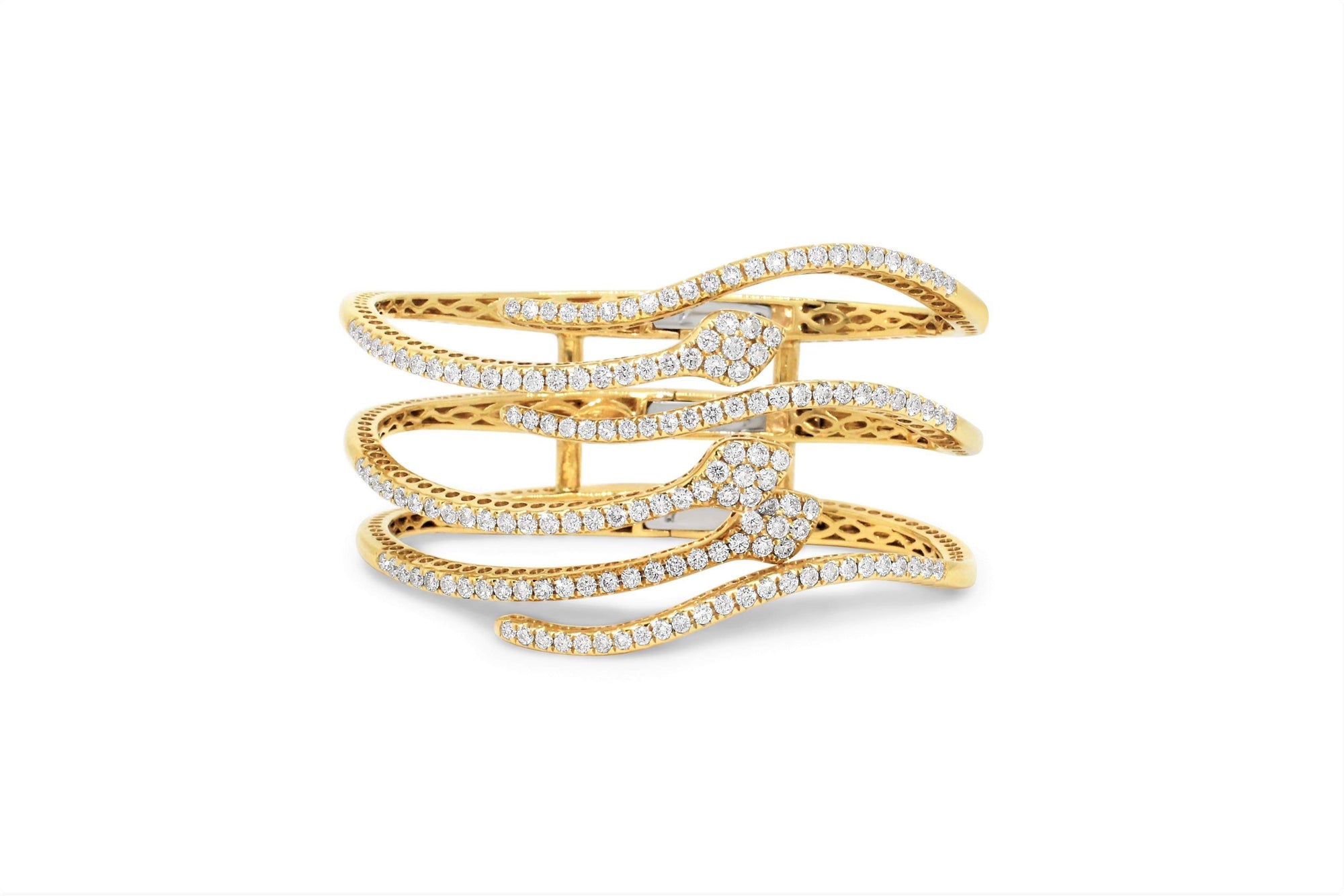 This Beautiful Bangle Features 3 Snakes With 4.20 Carats Of Dazzling Diamonds Set In 18kt Yellow Gold.
