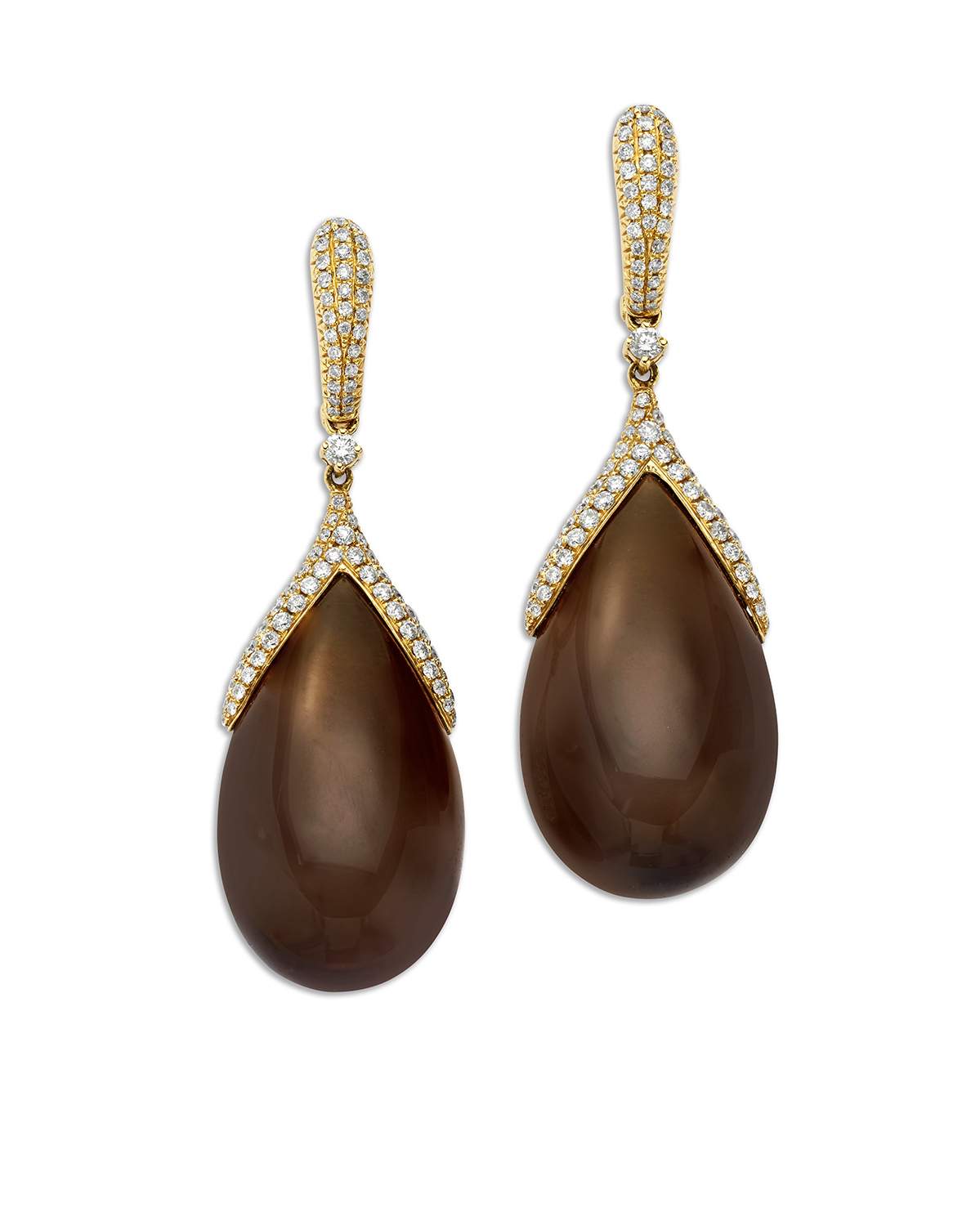 18K Yellow Gold Quartz Earrings Accented by 1.87 Carats of Round Cut Pave Set Diamonds.