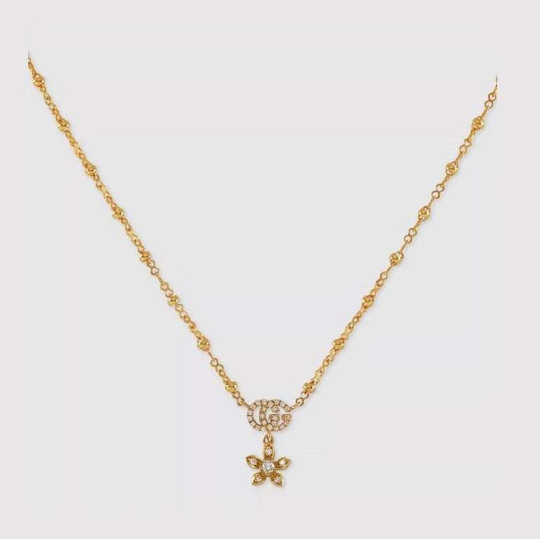 18KT YG GUCCI FLORA DIAMOND AND GG NECKLACE, 42CM DIA=.125CTS