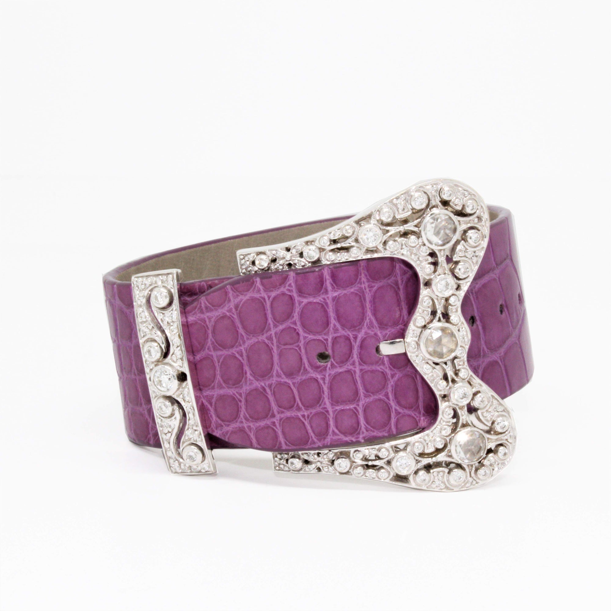 18K White Gold Barry Kronen Belt Buckle Bracelet With Diamonds and Extra Straps