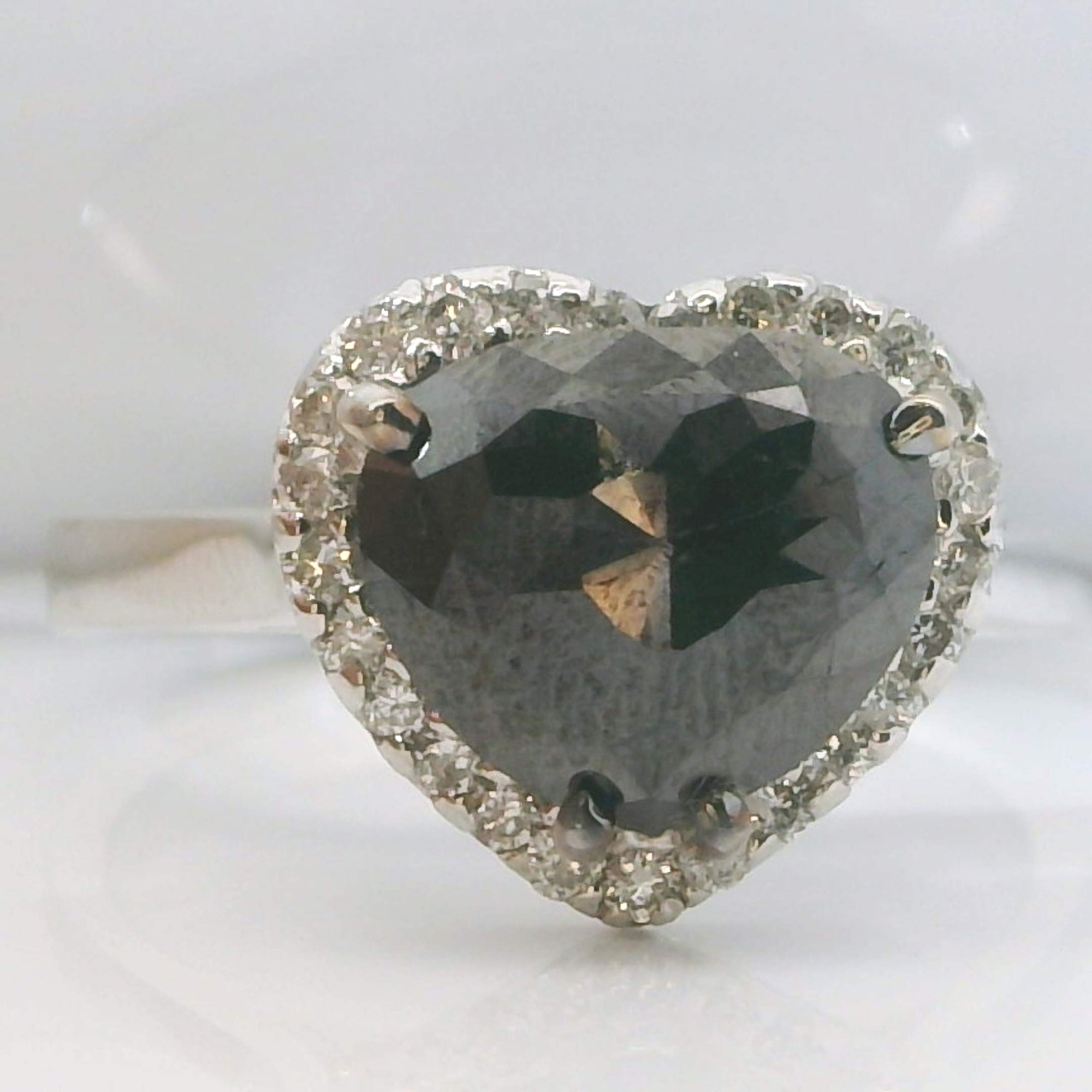 14kt white gold Black Diamond Heart Ring, black diamonds weighing 2.07cts and .27cts in diamonds