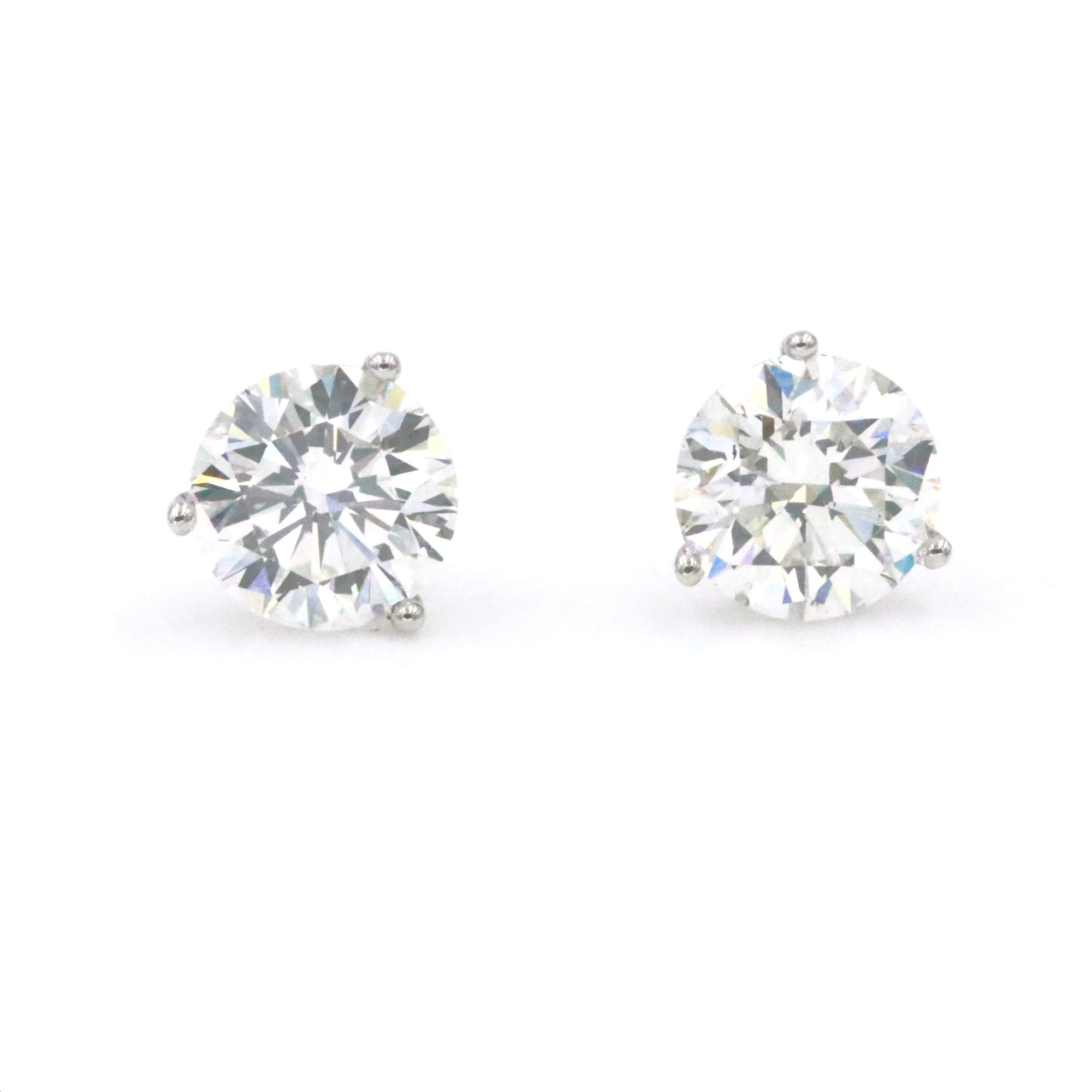 14 karat white gold Martini Stud Earrings containing 2.18 Carat Total Of Two, GIA certified, round brilliant diamonds with H-I/VS1-SI1.