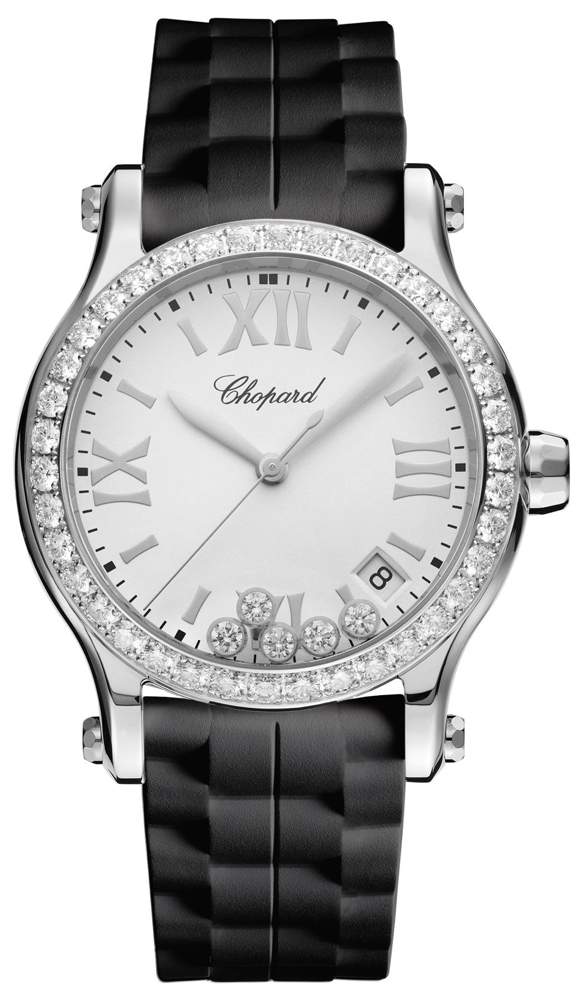Stainless steel Chopard Happy Sport 278582-3003 with white roman dial with diamonds