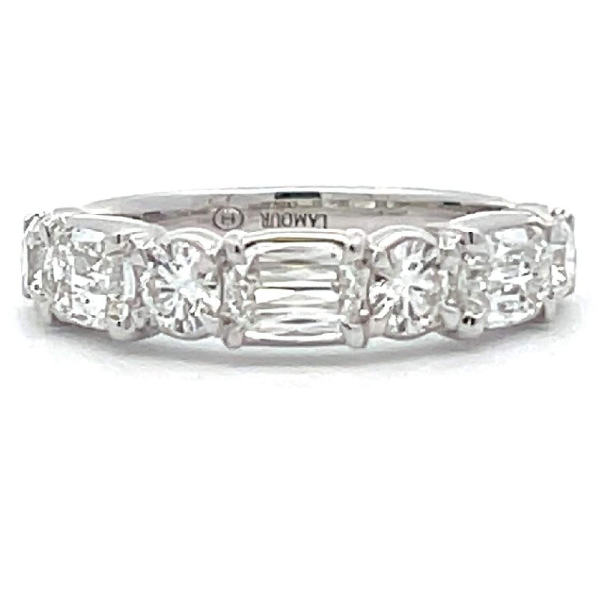 18 karat white gold Christopher Designs engagement ring, in the size 6 2/4, containing 0.90 cart total of crisscut l'amour diamonds and 0.67 carat total of round cut diamonds with E in color and VS in clarity.
