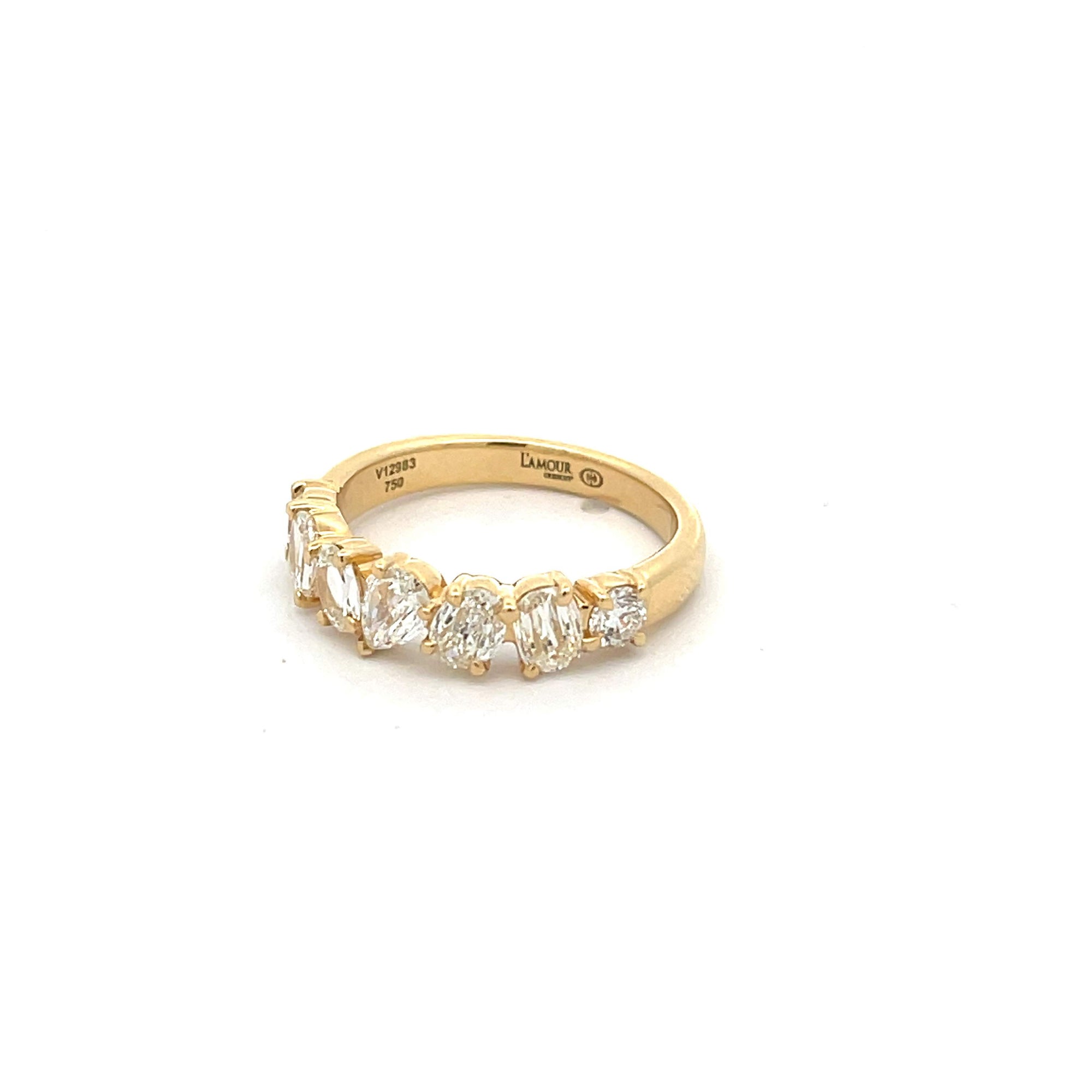 18 karat yellow gold Christopher Designs Engagement Ring, in the size 6 2/4, containing 1.25 carat total of seven multi-shape diamonds with G in color and VS in clarity.