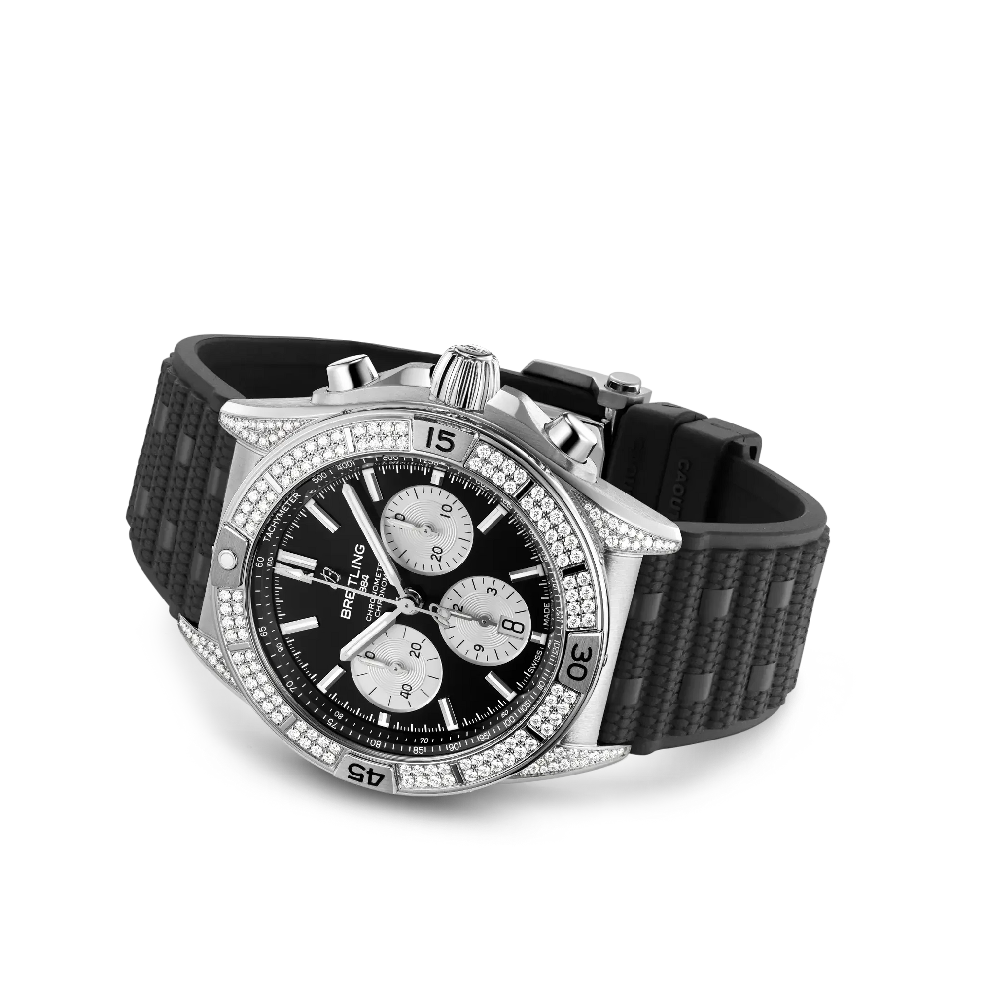 Breitling’s all-purpose watch for your every pursuit. The Chronomat holds a significant place in Breitling’s history. Introduced in 1984, at a time where extra-thin quartz timepieces were the order of the day, Breitling placed a bold bet on an impressively proportioned mechanical watch. Based on the Frecce Tricolori chronograph, which had been developed and launched in 1983 in collaboration with the famed Italian aerial squadron, the Chronomat celebrated Breitling’s centenary in style and marked the return of the mechanical chronograph to its rightfully prominent place at the brand which had built its global reputation on these incredible watches. Available in a variety of materials from stainless steel to luxurious 18 k red gold, the Chronomat features a 42 mm case and the iconic bezel with the four rider tabs. Available in a range of colorful dials, the Chronomat is matched to the signature “Rouleaux” bracelet in metal or rubber and is powered by the in-house Breitling Manufacture Caliber 01, a COSC-certified chronometer.
