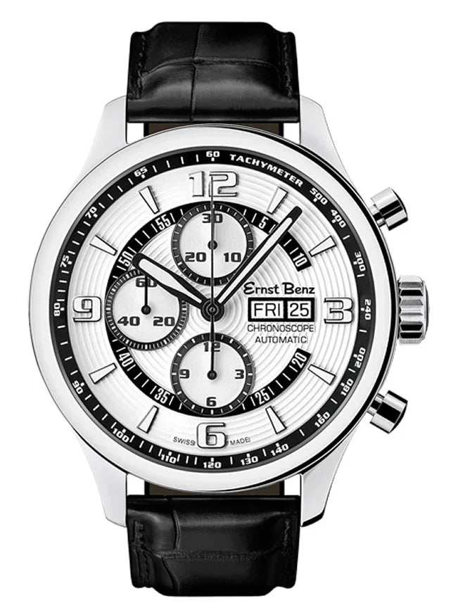 Dial: White with Black Tachymeter, Metallic Applied Markers with White Luminous