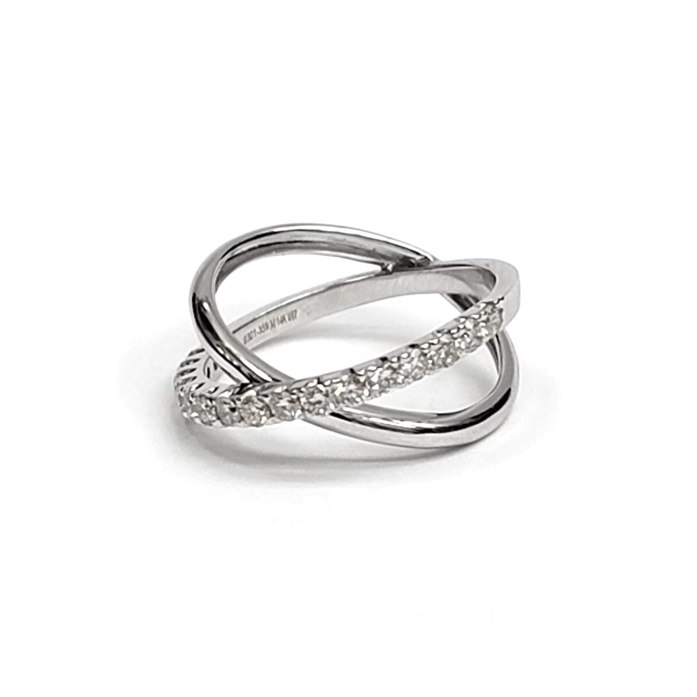 14K White Gold Criss Cross Diamond Ring, 17D=~.61ctw