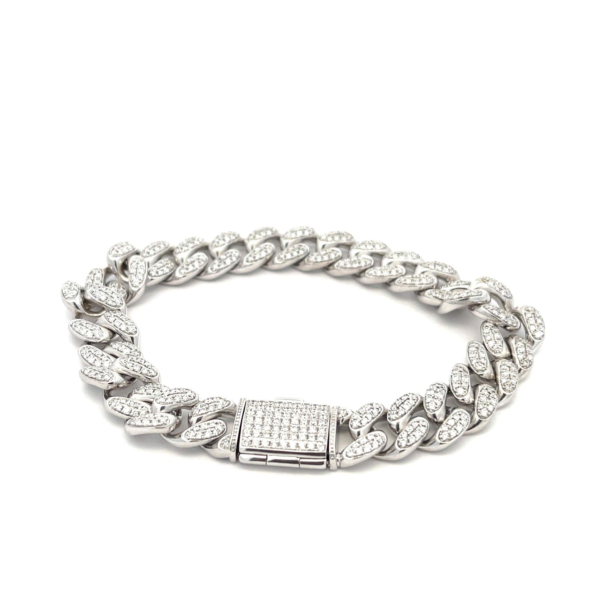 14 karat white gold Curb Link Bracelet containing 3.00 carat total of round pave diamonds.