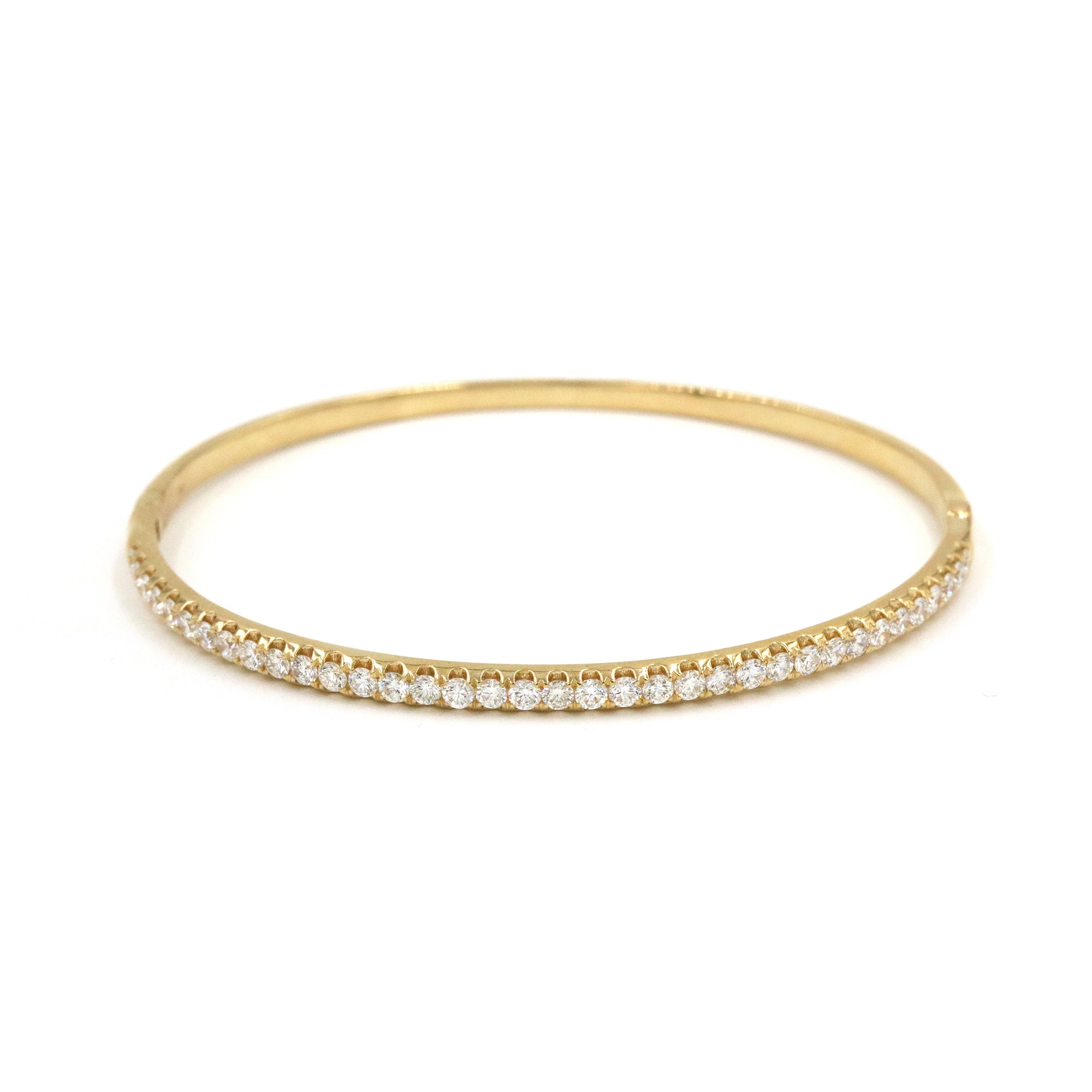 18 karat yellow gold bangle containing 1.45 carats of round diamonds.