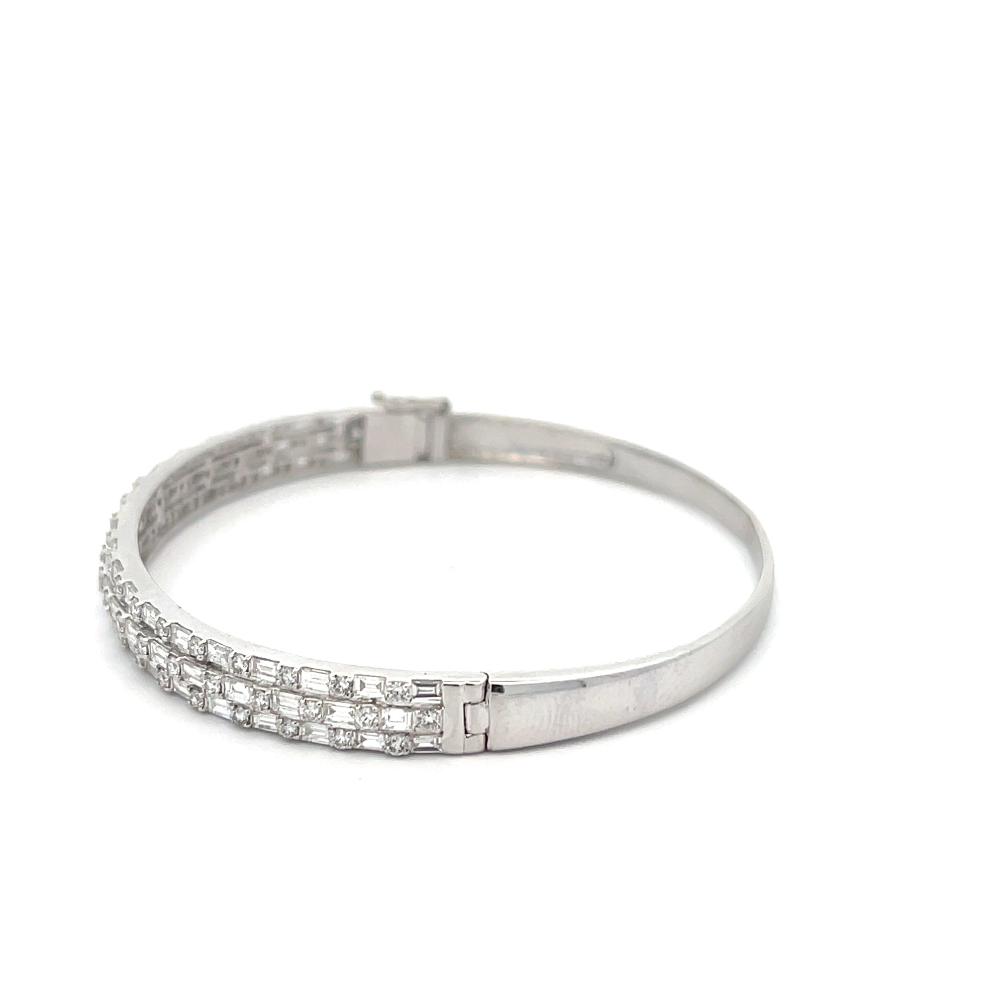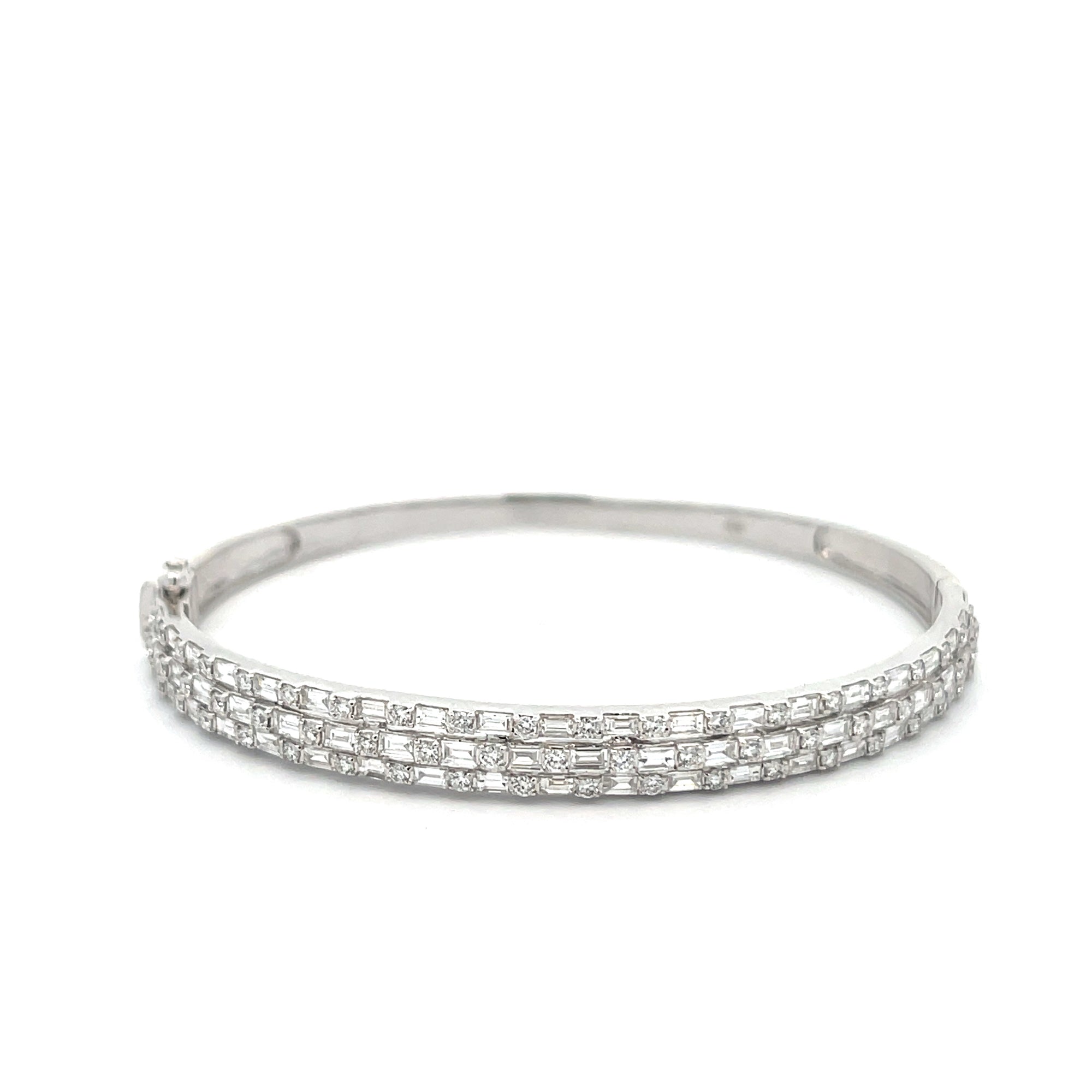 18 karat white gold bangle containing 3.17 carat total of diamonds.