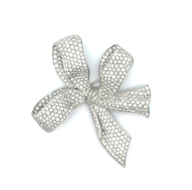 Brooch is crafted in 18 karat white gold and features approximately 23 carats of diamonds.