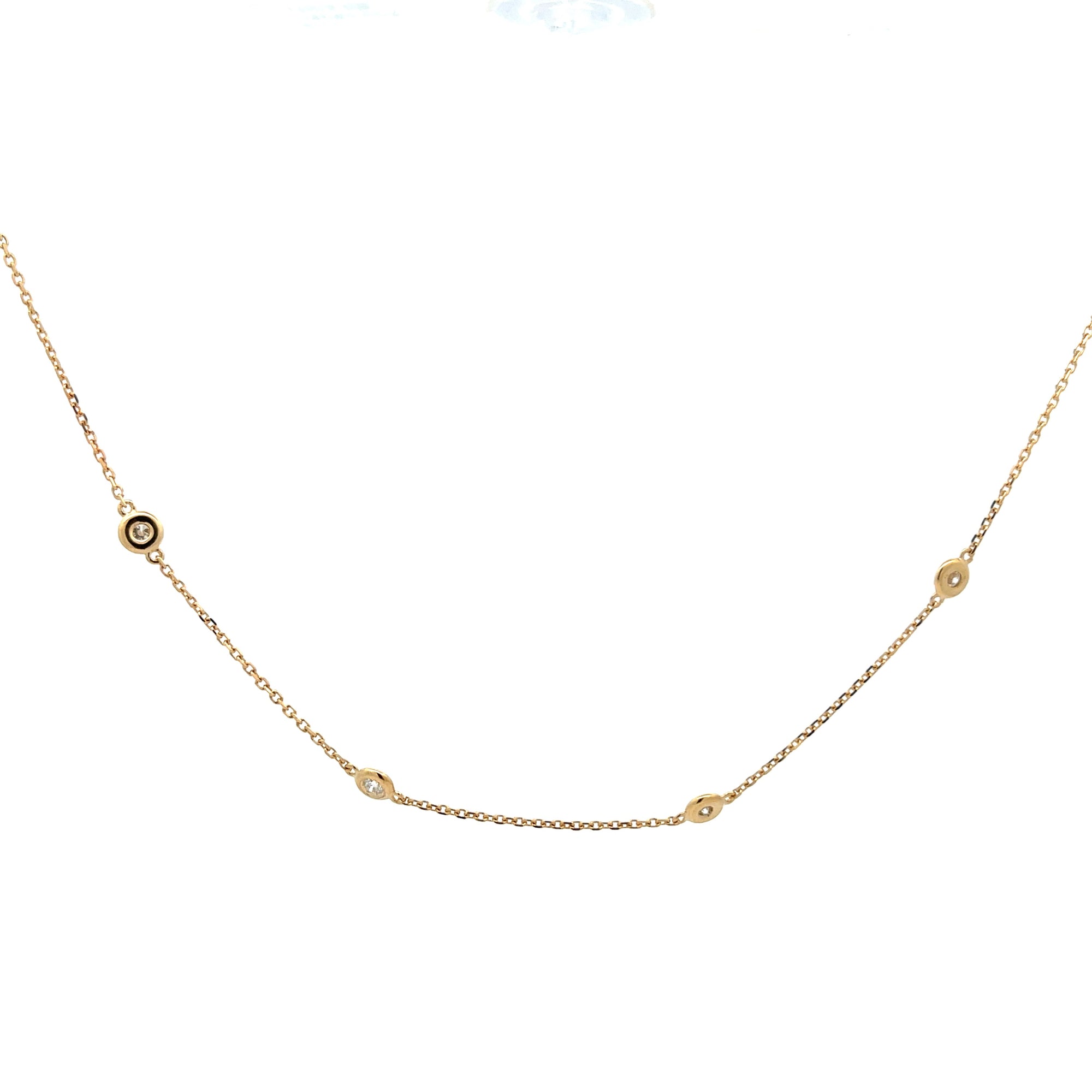 14 karat yellow gold by the yard necklace containing 0.50 carat total of round diamonds with F in color and SI in clarity.