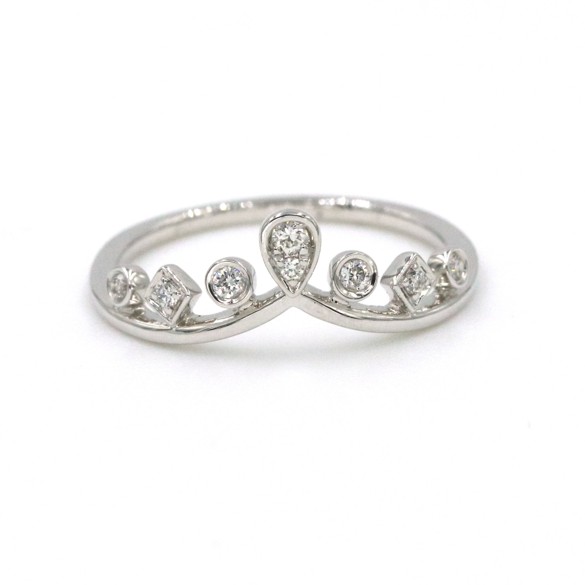 14K White Gold Chevron Diamond Crown Band D=.10Ctw