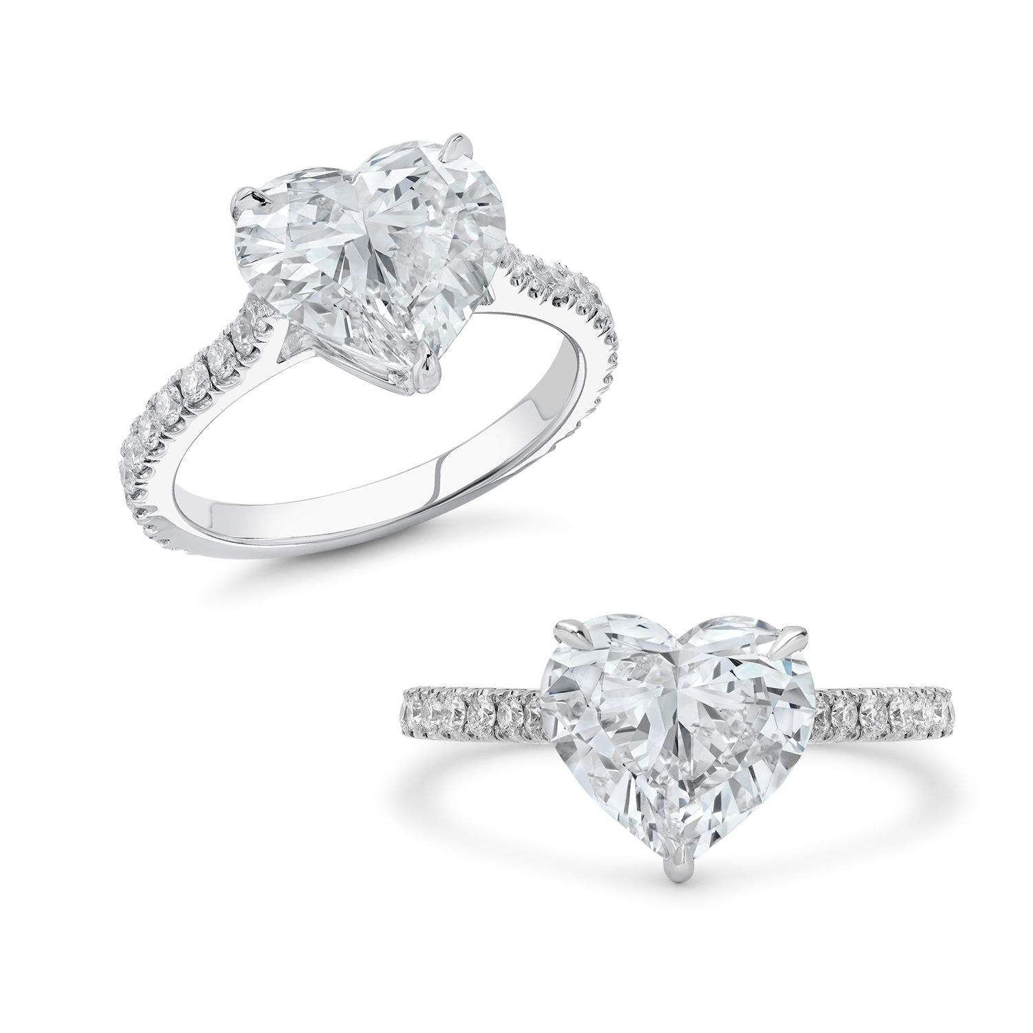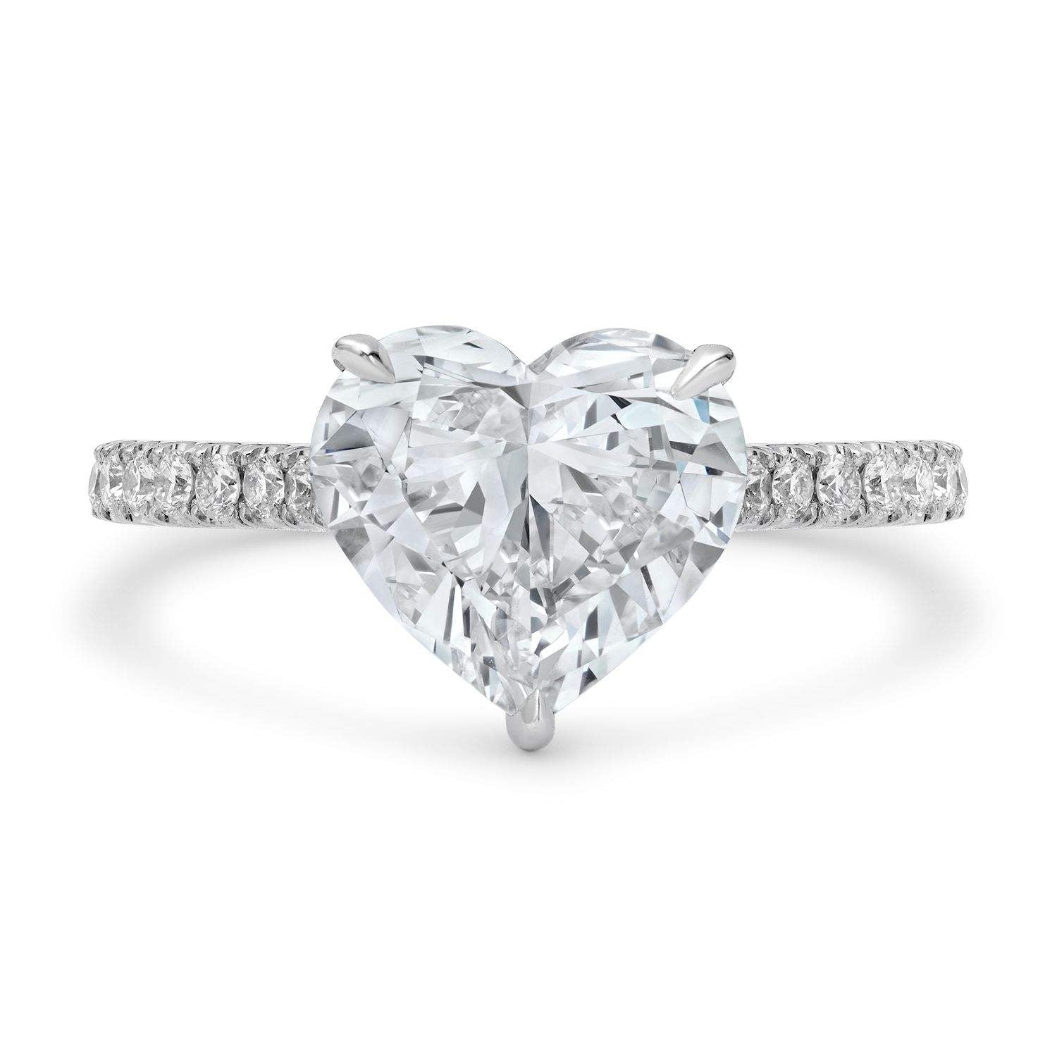 Ring features a 3.41 carat GIA certified heart shaped diamond with I color and SI1 clarity,set in an 18K white gold setting with .43 carats total weight of diamonds.
