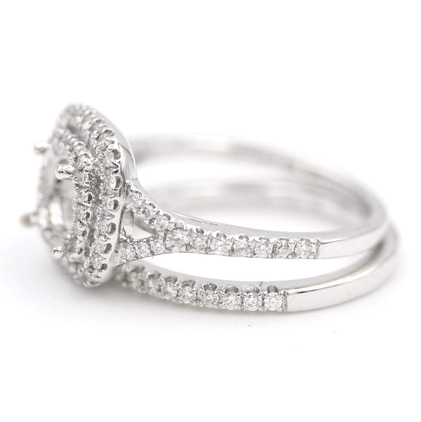 18K White Gold Semi-Mount Diamond Double Halo Engagement Set D=~.52ctw